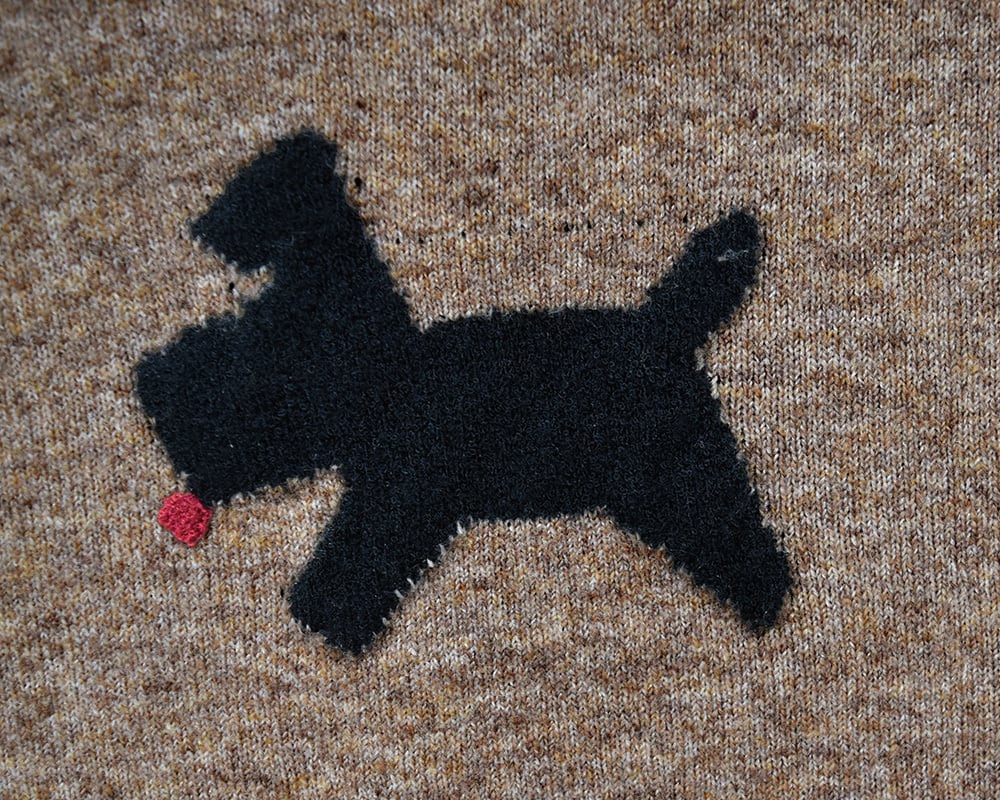 ジャカード部分には犬の毛並みを思わせるクルクルとしたブークレ糸を使用。