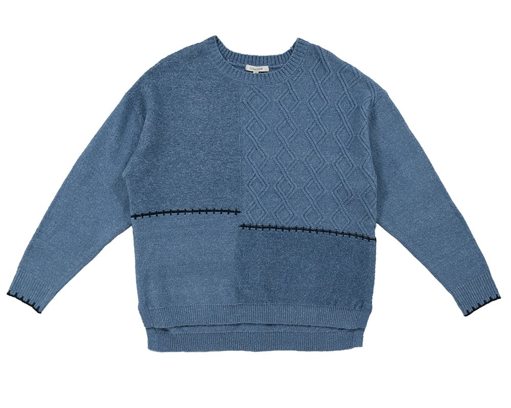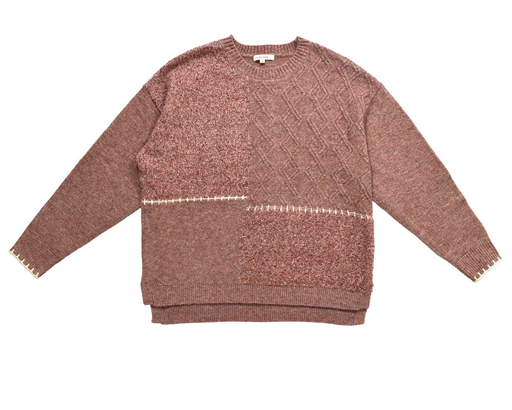 編み柄や糸の加工で表情豊かに仕上げた、パッチワークデザインのニットプルオーバー。