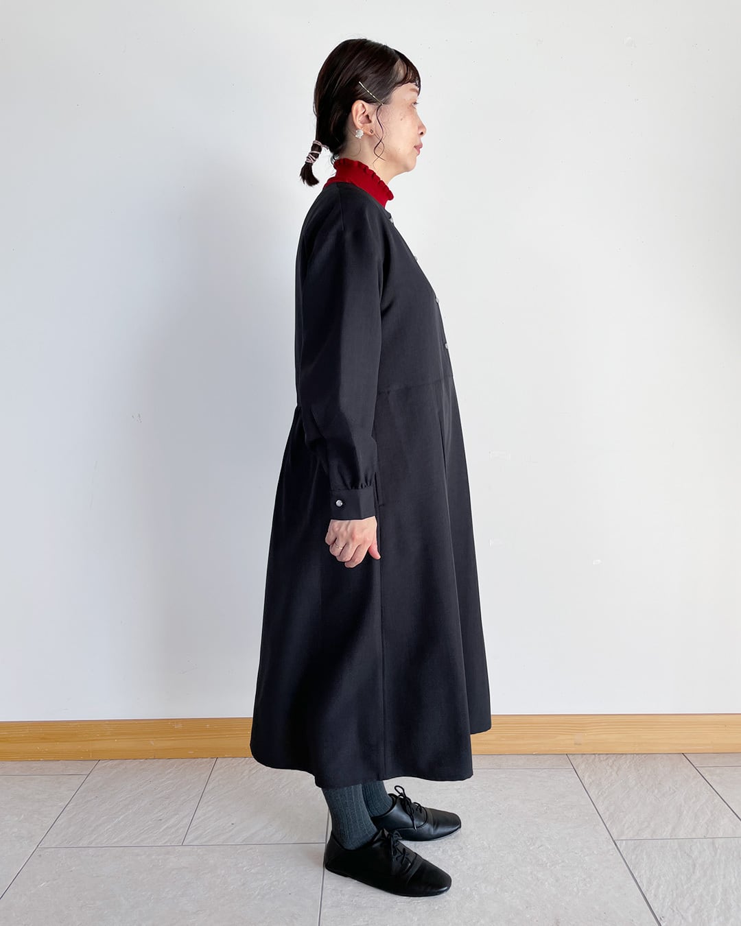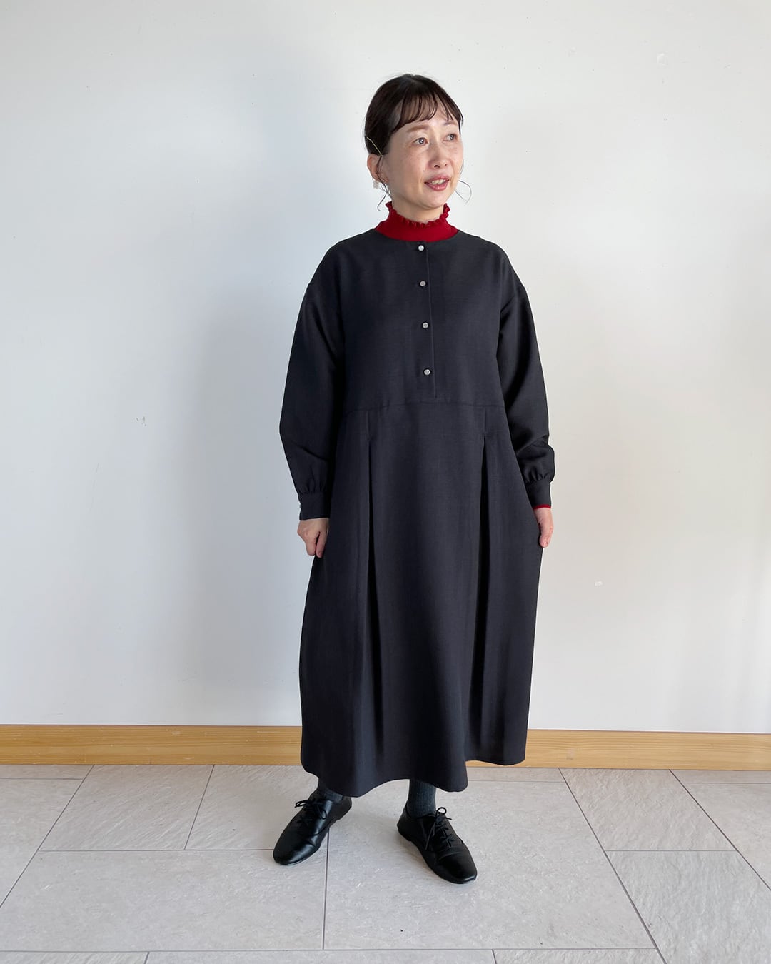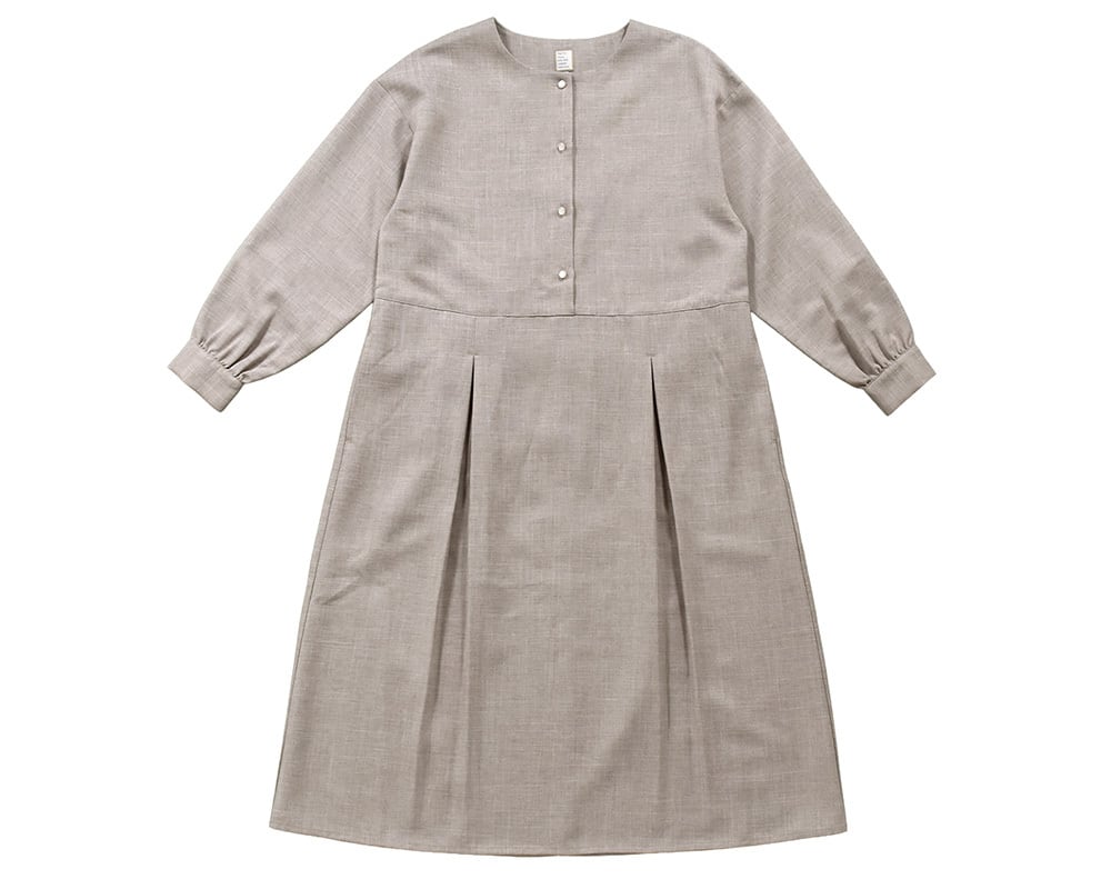 スカート部分にタックを入れたワンピースは、きれいめにもカジュアルにも着まわせます