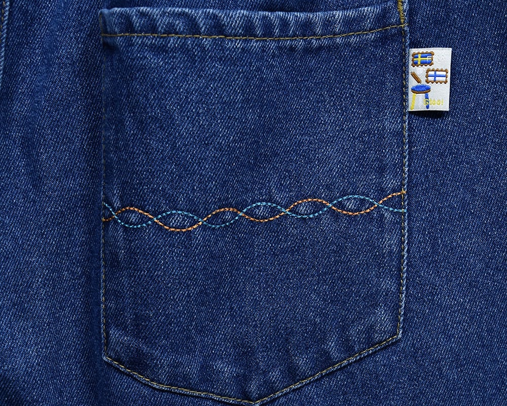 ポケット脇のピスネームには、北欧の国旗やスープなどのモチーフを散りばめました。