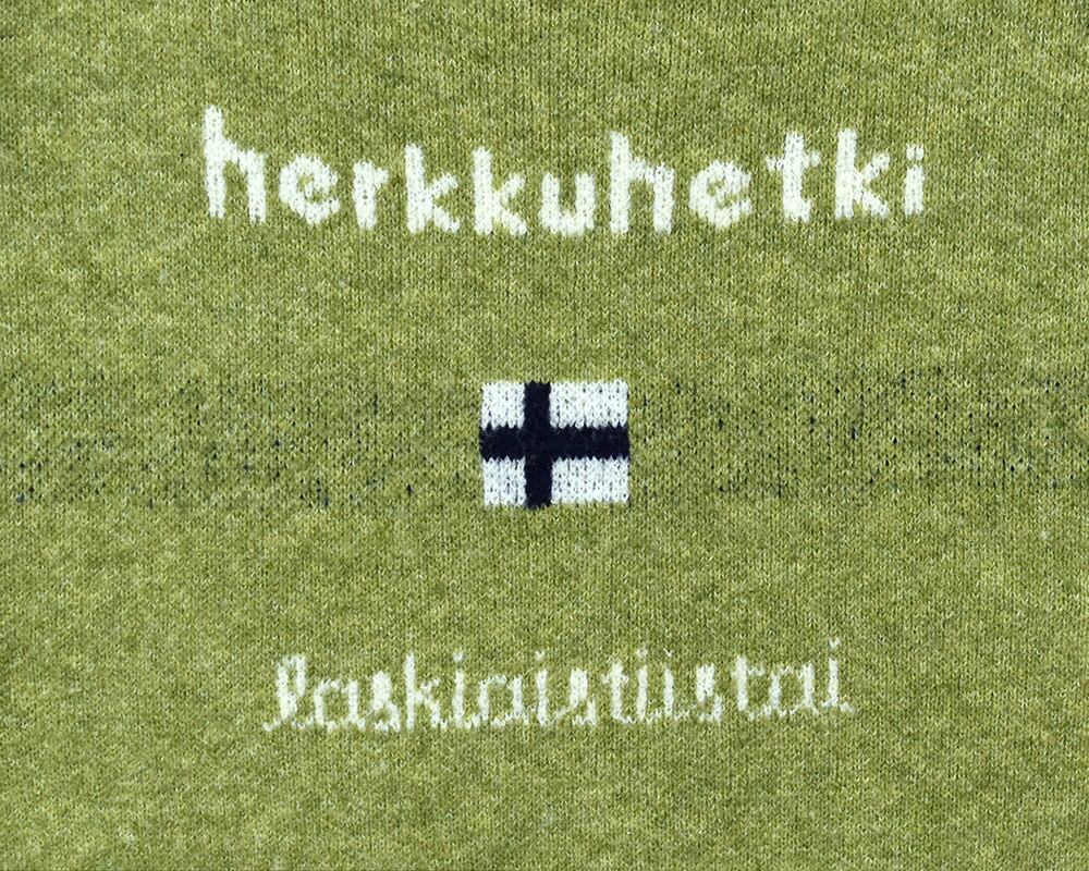 国旗とロゴを組み合わせた柄で、ブルーとグリーンはフィンランドの豊かな自然を、ピンクとモカベージュはスウェーデンのコーヒーやお菓子を囲んで過ごす北欧の文化「FIKA」をイメージしたロゴニットです。