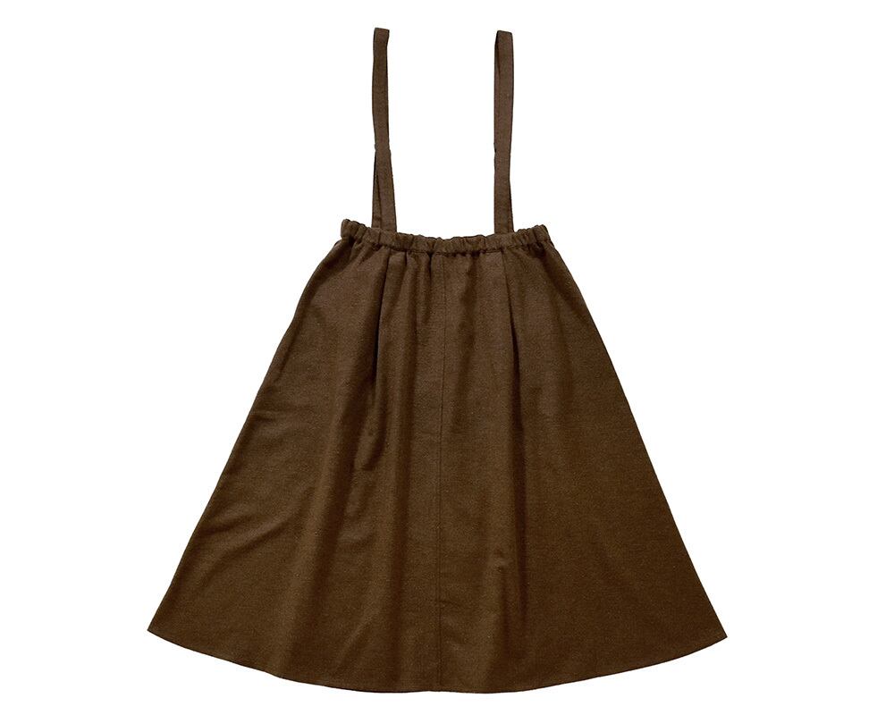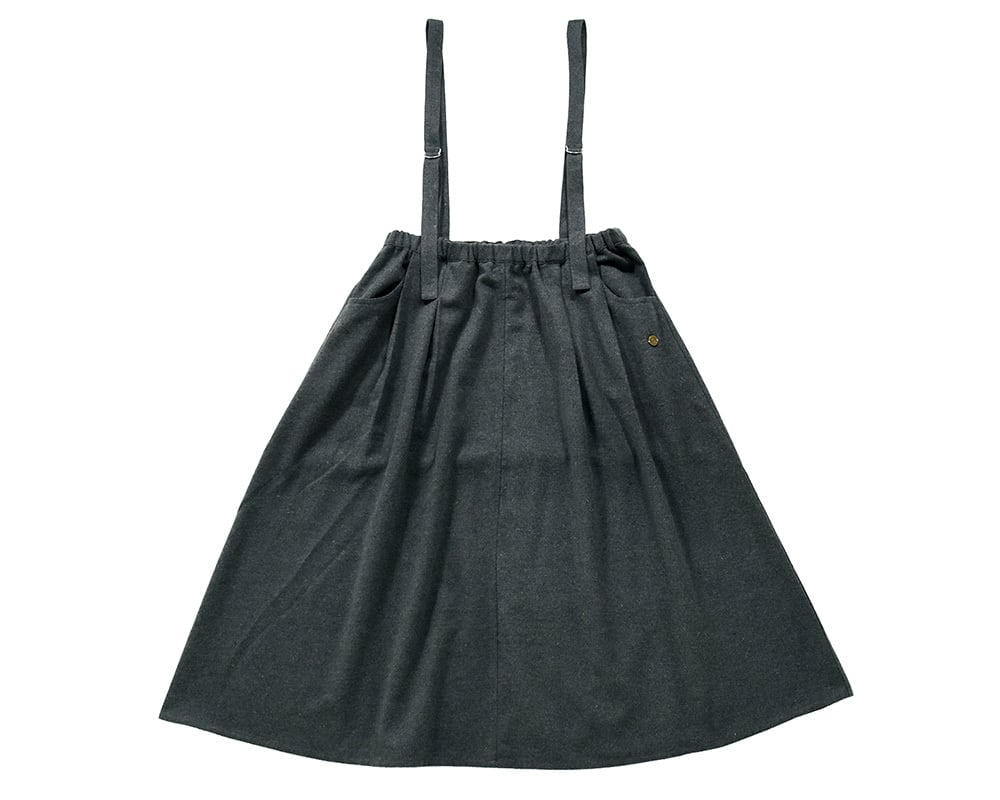へリンボーンツイード素材を使用したサスペンダー付きロングスカート。タックが程よいボリューム感を生み、ふんわりとしたシルエットに。ウエストはバンディング仕様で、快適な着心地で着脱もラクラク。クラシックな素材感とデザインで、カジュアルにもきちんとスタイルにも合わせやすい一枚です。