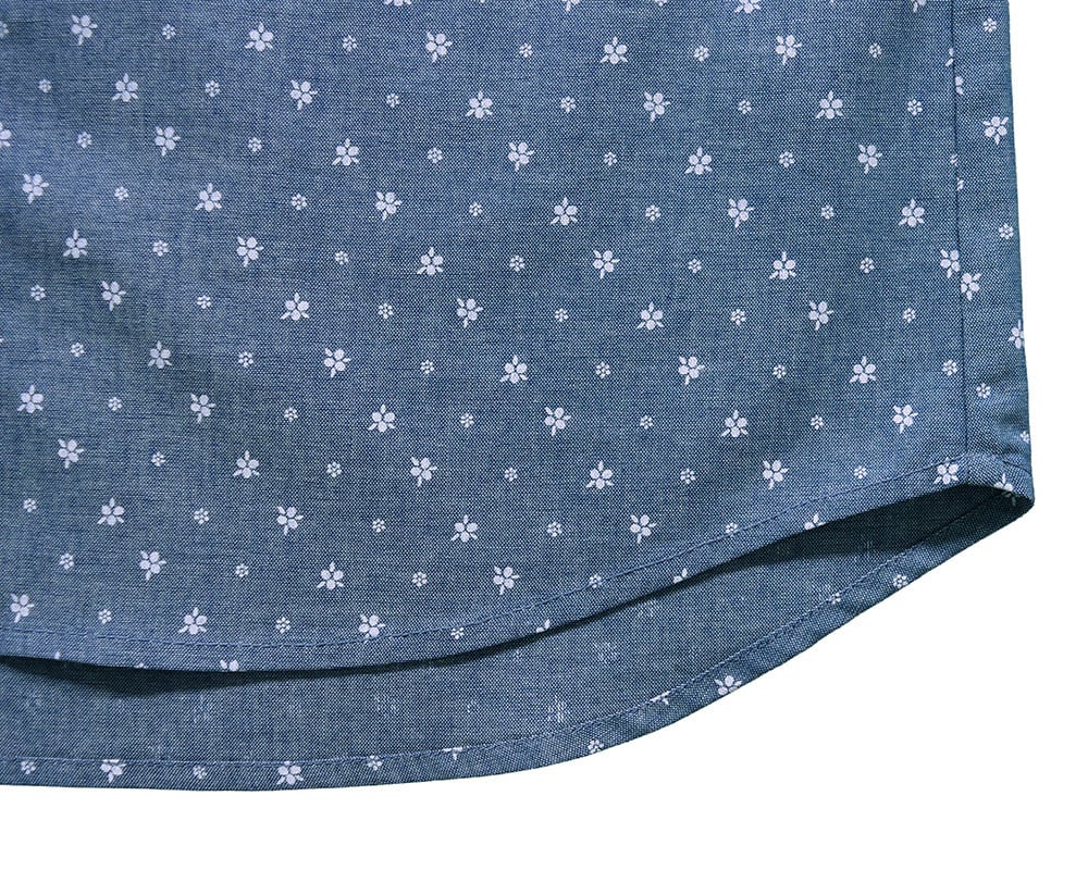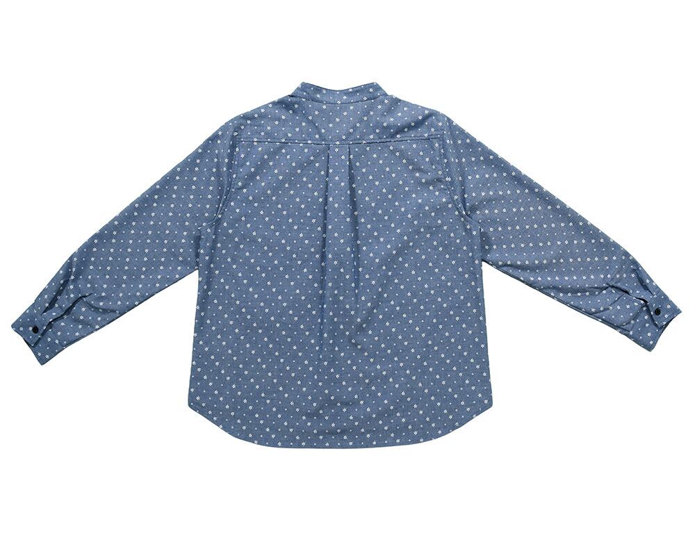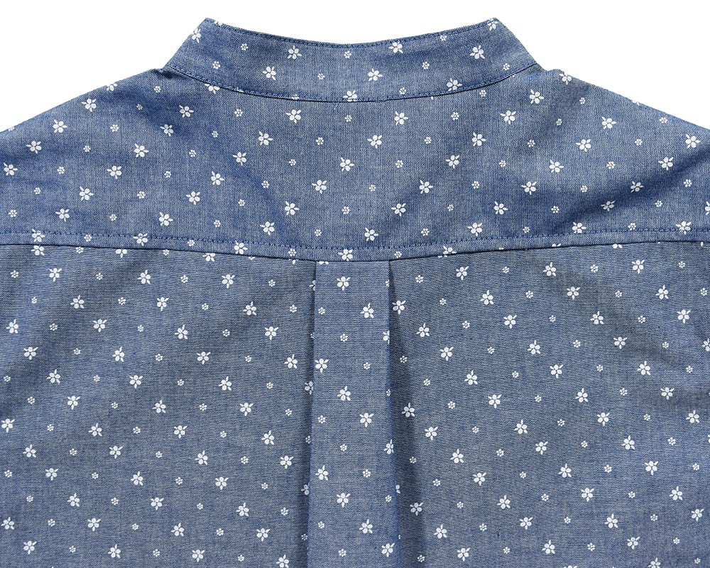 微起毛加工を施した、あたたかみのあるシャンブレー素材を使用した長袖シャツ。やわらかな風合いと、さらりとした肌ざわりが魅力です。全体にオリーブ柄のバンダナプリントをあしらい、遊び心のあるデザインに仕上げました。1枚着としてはもちろん、軽い羽織りとしても活躍する万能アイテム。冬から春にかけてのカジュアルスタイルにおすすめです。