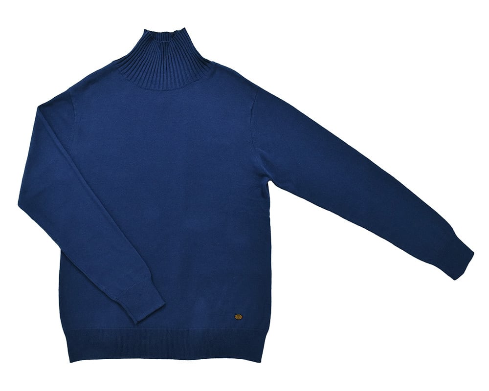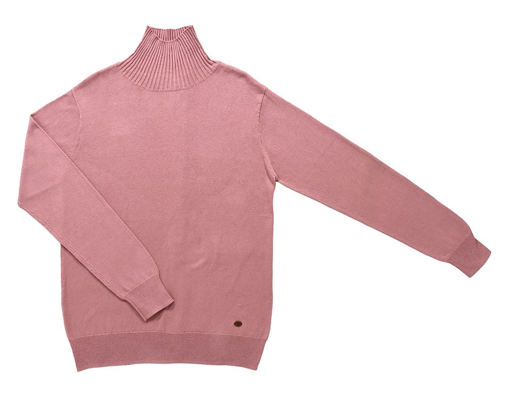 太め巾のリブ衿がポイントのニットのプルオーバー。アクセントになるカラーで展開しており、1枚でもインナーとしてもポイントとなるアイテムです。袖口や裾もリブ仕様であたたかく、スッキリと見せてくれます。裾にプレートを付けポイントをプラスしました。