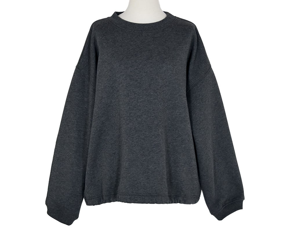 表面は天竺素材でさらっとなめらかな肌触り、裏面はあたたかみのあるフリース素材を使用しています。スウェットほどの厚みで、軽くて気軽に着用できるカットソー素材を使用しています。