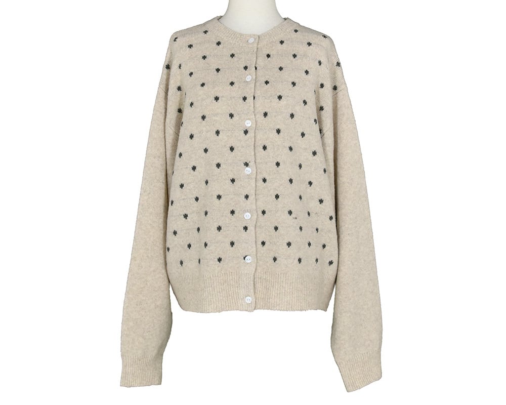 スタイリングに華やかさを添えるドット柄のニットプルオーバーです。暗くなりがちな冬の装いに程よいニュアンスをプラスし、気温の変化にも対応しやすい着回し力の高いアイテムです。