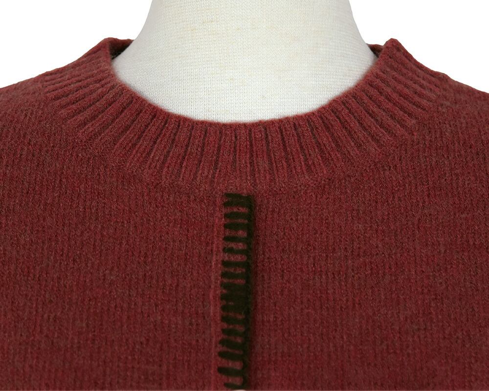 シンプルな天竺編みのボディのセンターフロントには、ハンドステッチのようなあしらいを施し、シンプルながらもさりげないアクセントをプラスしています。