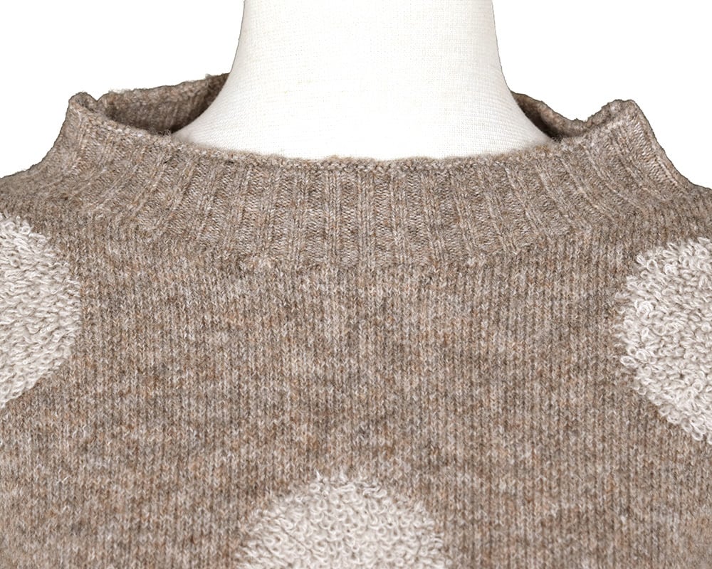 ドット部分をループ編みで立体的に仕上げたニットプルオーバーです。ドット柄がスタイリングにニュアンスを加え、暗くなりがちな冬のコーディネートに華やかさを添えてくれる一枚です。