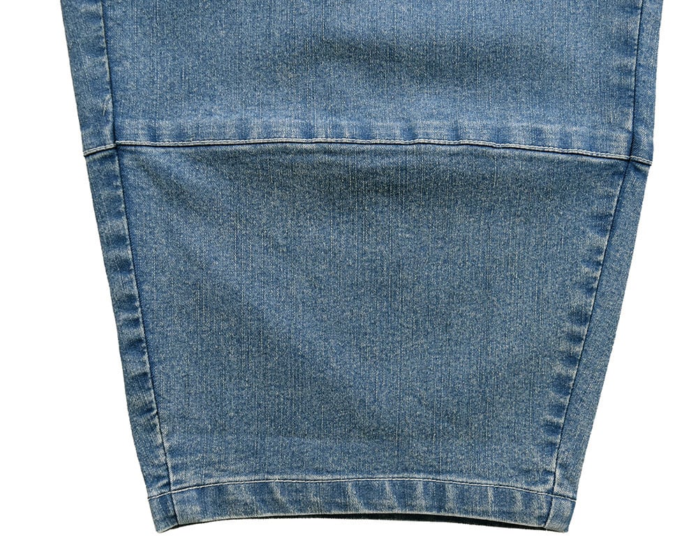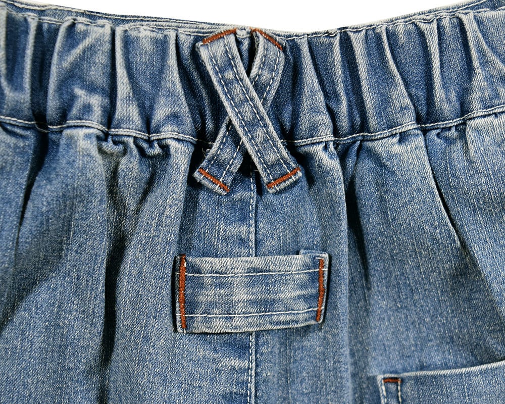 ストレッチ性のある生地を使い、動きやすさにもこだわりました。ウエストにはちょうちょの彫り柄入りスナップボタンがポイントです。インディゴブルー、インディゴネイビーの2色展開です。(KAJP6088 セットアップデニムジャケット)とセットアップで着用頂けます。