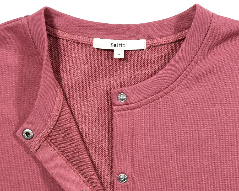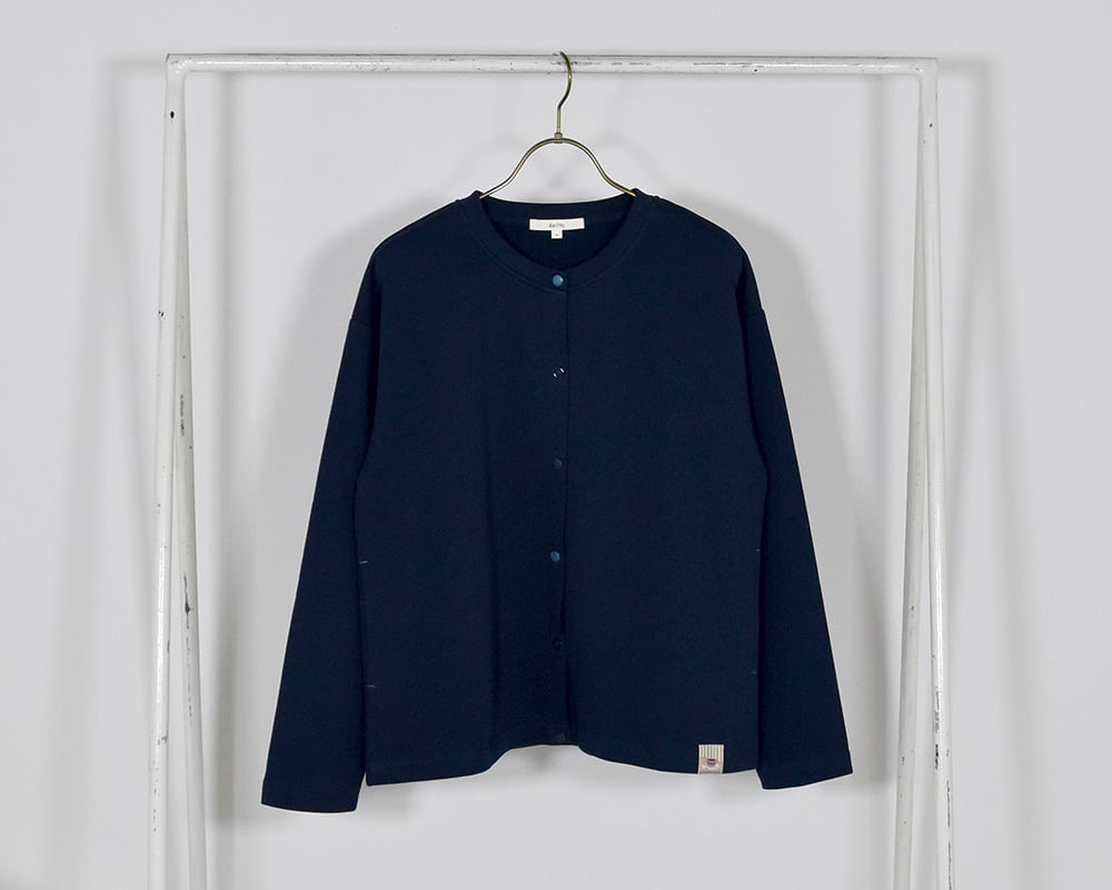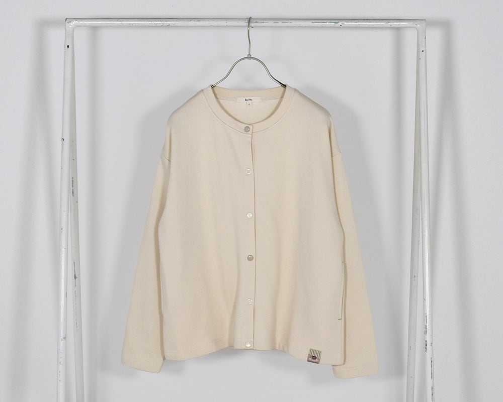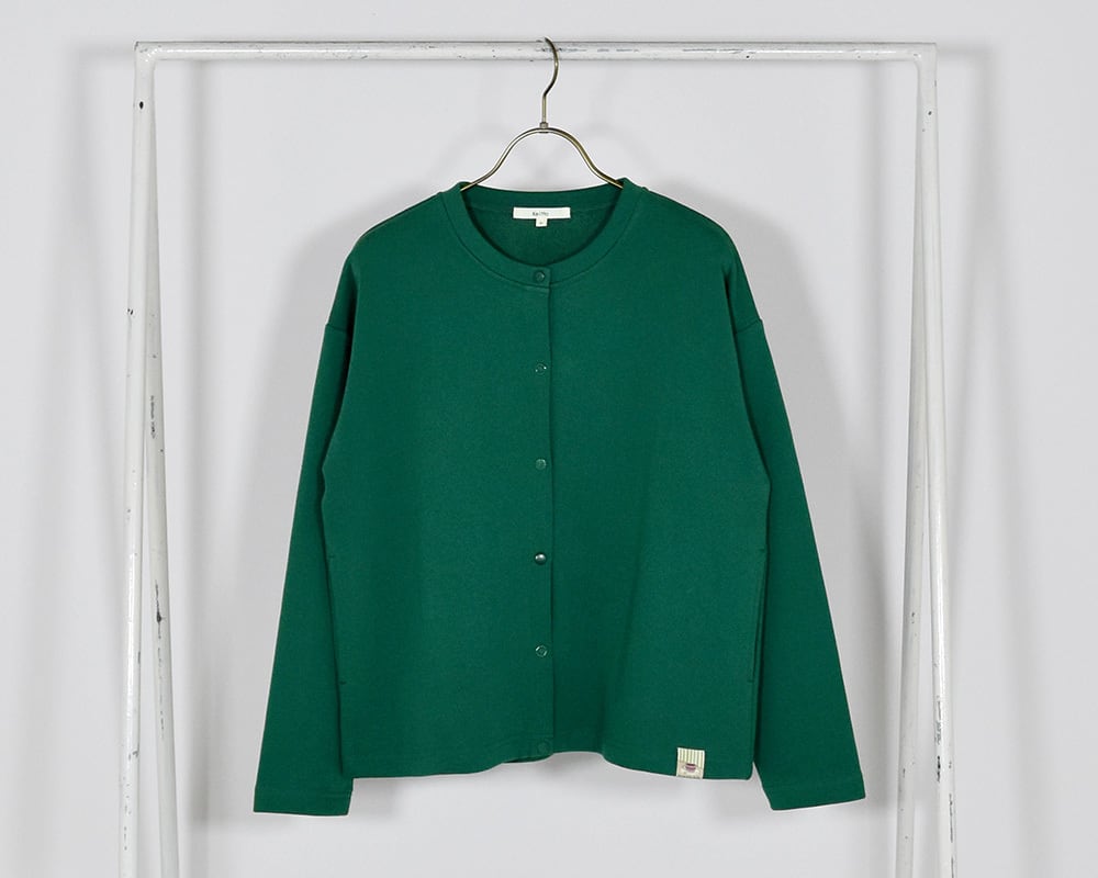 いろいろなドットボタンが特徴の、さらっと羽織れる裏毛素材のカットカーディガンです。