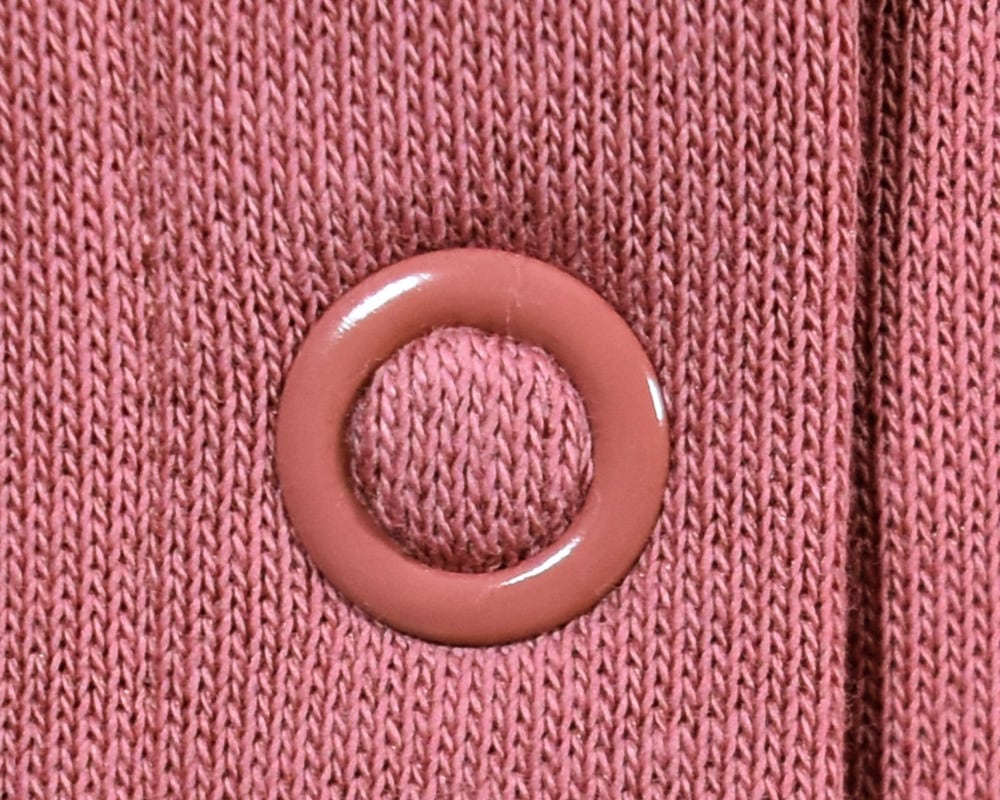 吸水性が高く肌触りのよい綿と、シワになりにくく乾きやすいポリエステルを組み合わせているので、普段使いしやすく、お手入れも簡単です。本体と微配色のドットボタンに加えて、リングドットボタンや、ワッフルをイメージした彫り柄のドットボタンを使用。