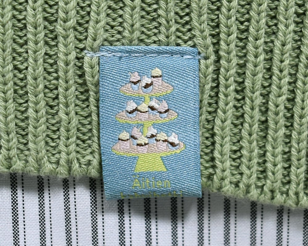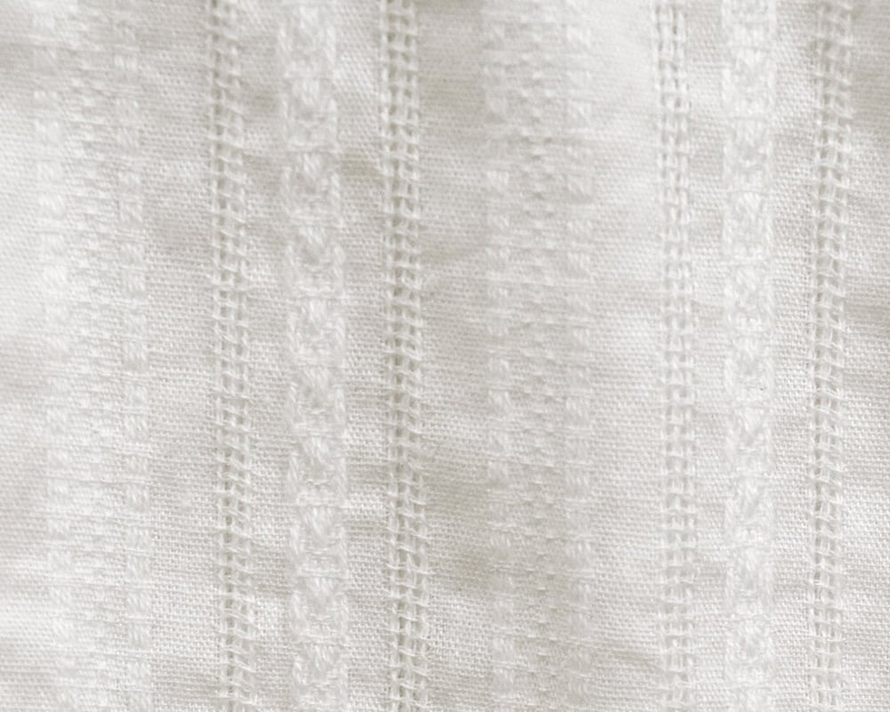 布帛部分はドビーやストライプなど、バリエーション豊かに仕上げました。裾にはアフタヌーンティーをイメージしたピスネームがポイント。