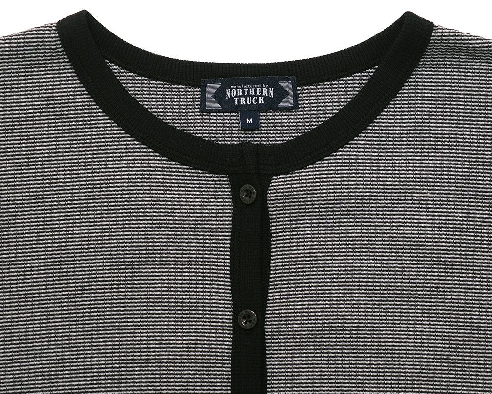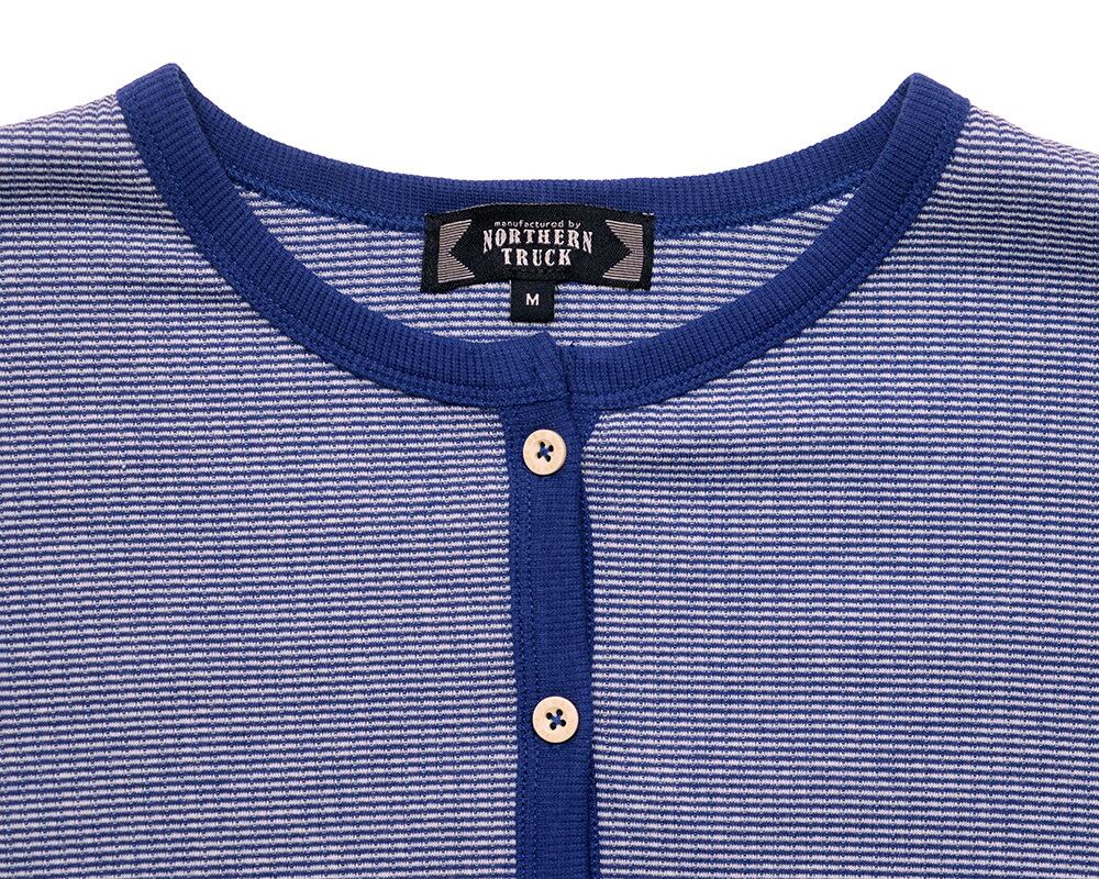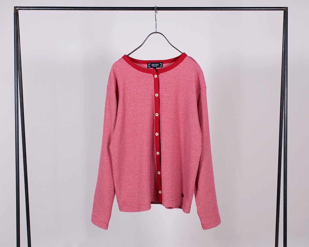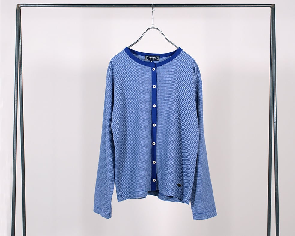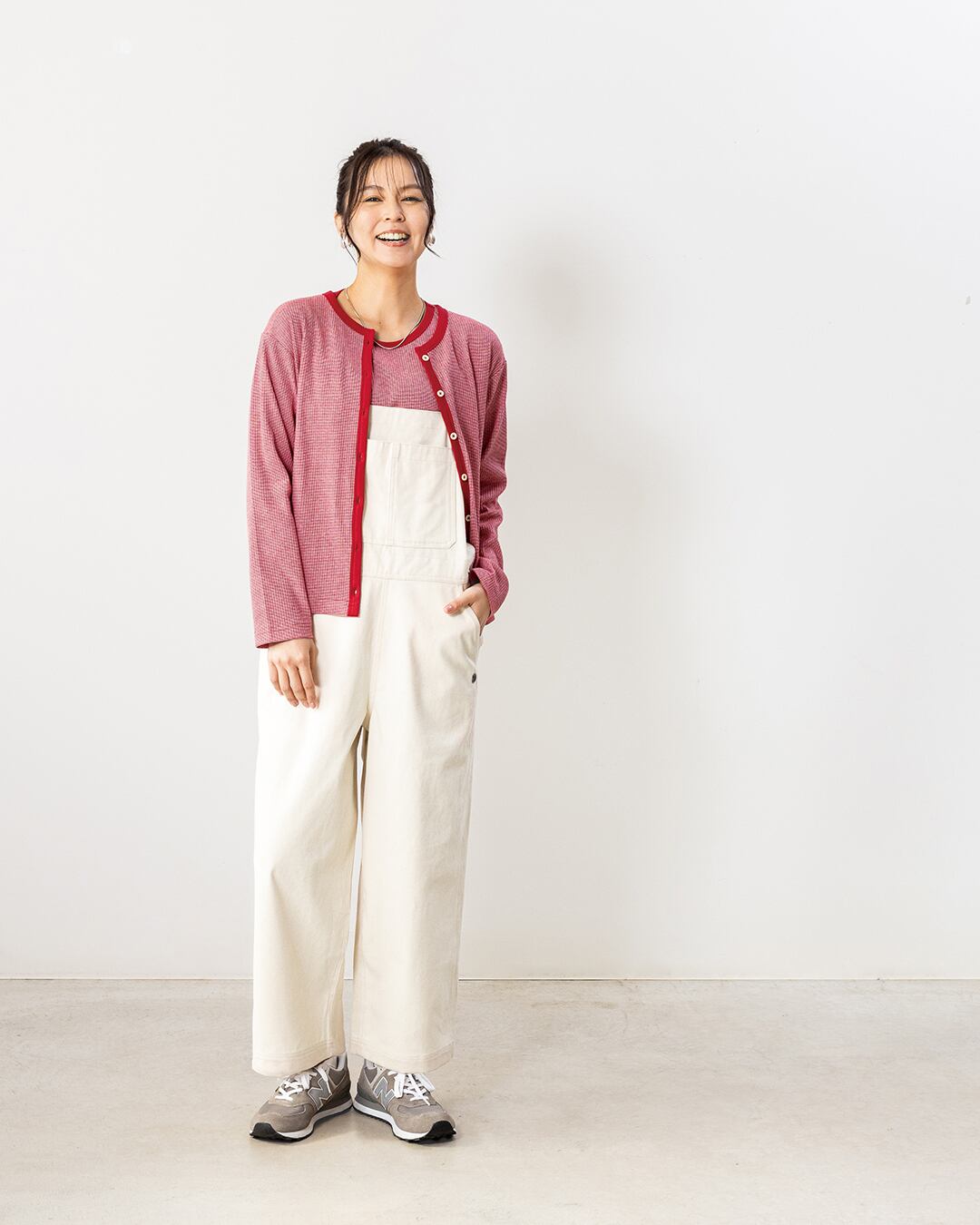 主張しすぎず上品な印象を与え、カジュアルからきれいめまで幅広いスタイルに合わせやすいアイテムです。衿ぐりや前立てに無地を使用することで、すっきりと見せてくれ、アクセントにもなっています。裾には小さめのプレートを付けポイントをプラス。程よく身体に沿うシルエットで、同じ素材のインナーやシャツなどとの重ね着コーデに活躍する一着です。