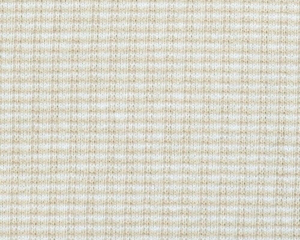 リブ編みのカットソー素材で仕上げた、柔らかな着心地のカーディガン。細い線が繰り返された微塵ボーダー柄です。