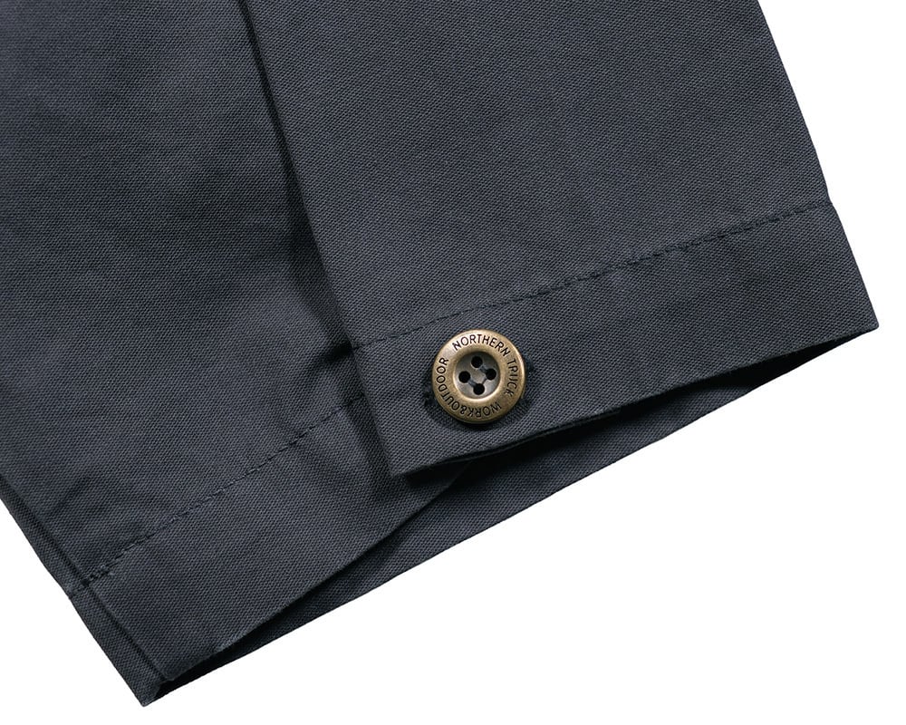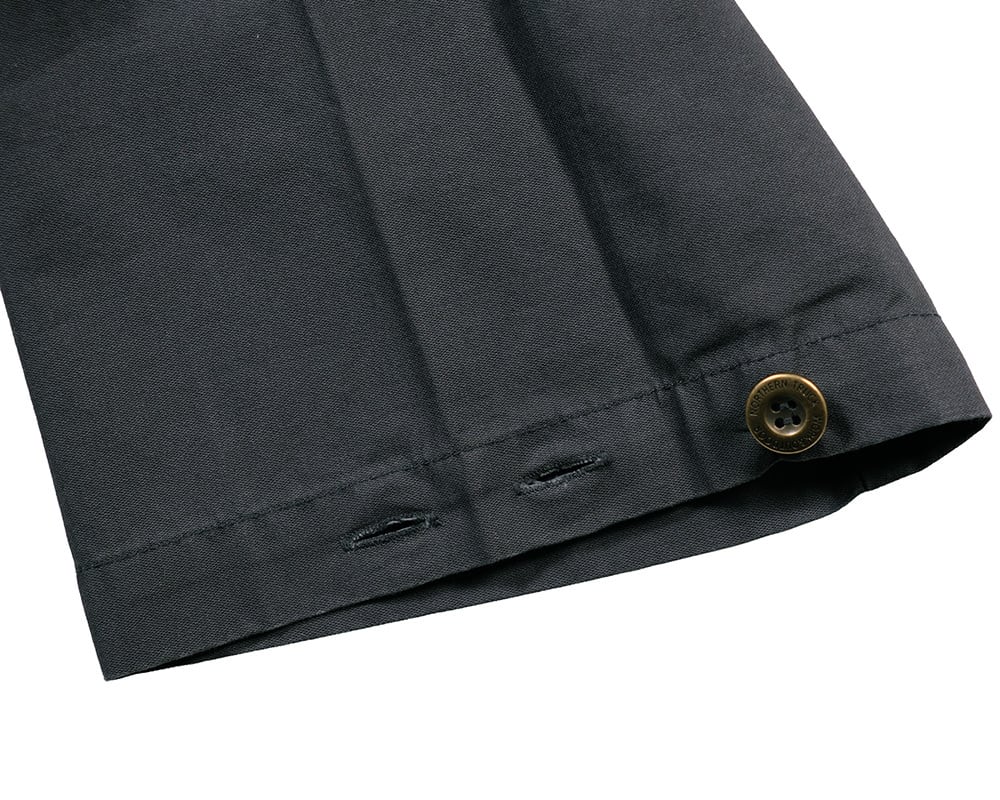 袖口は広めに設定し、折り返したり、ボタンで調整したりとアレンジを楽しめます。刻印入りの金属ボタンを使用することで、程よいワーク感をプラスしました。