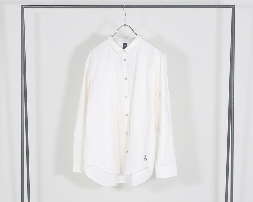 ベーシックなシルエットのシャツ。カラーもベーシックな色展開でコーディネートに使いやすいアイテムです。背中の綿テープと左裾のNTらしいイカリの刺繍がポイントに。