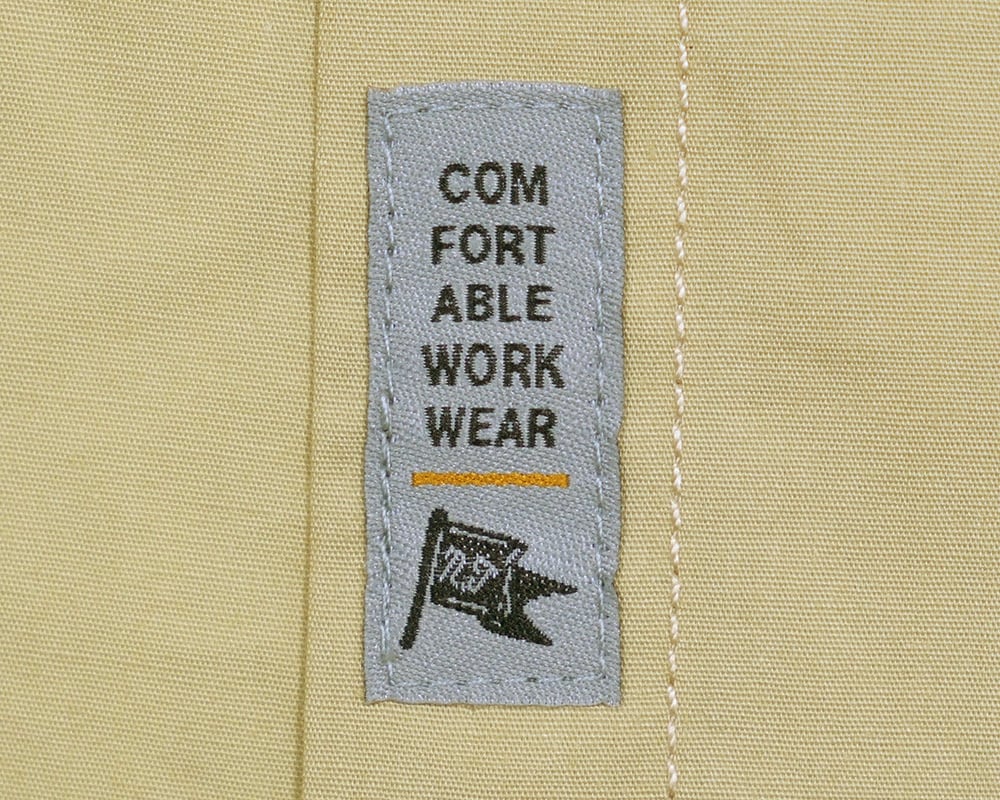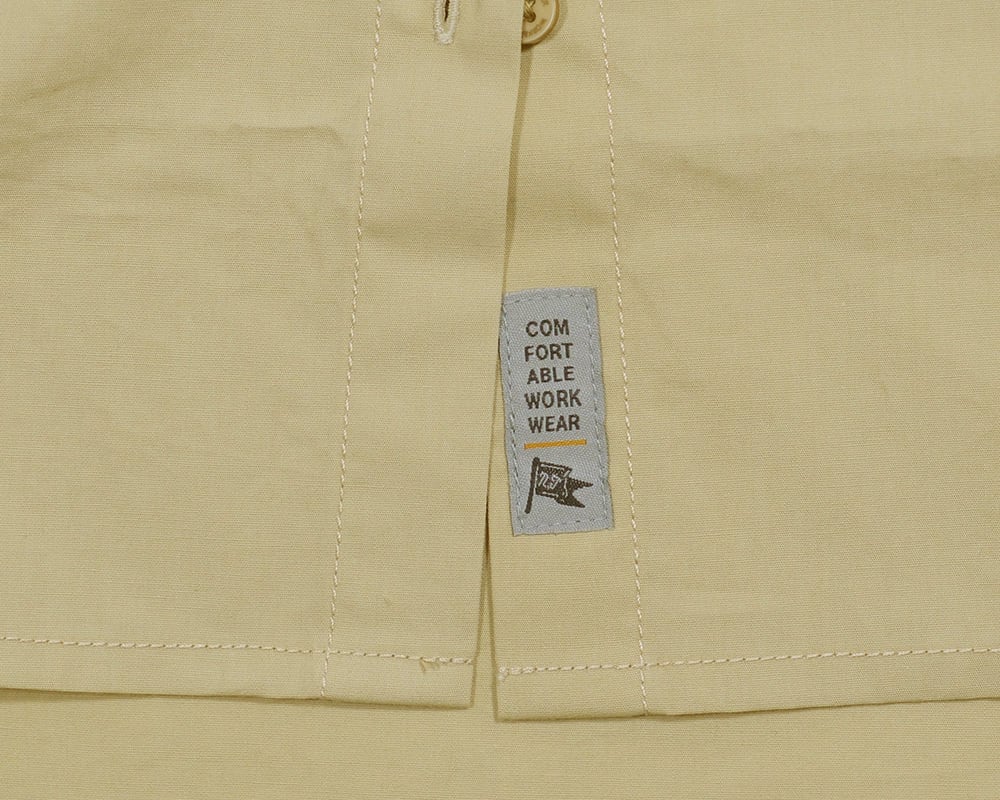 高密度で張りのある平織素材を使用したバンドカラーのチュニックシャツ。長めの丈で体型をさりげなくカバーしつつ、カーブした裾が軽やかな印象に。ボトムのポケットを使用しやすい様にカーブを深めに仕上げました。途中まで前立て仕様にし変化を持たせ、刻印釦やワッペンでポイントをプラス。前開きデザインなので、ボタンを閉じてはもちろん、羽織りとしても便利なアイテムです。