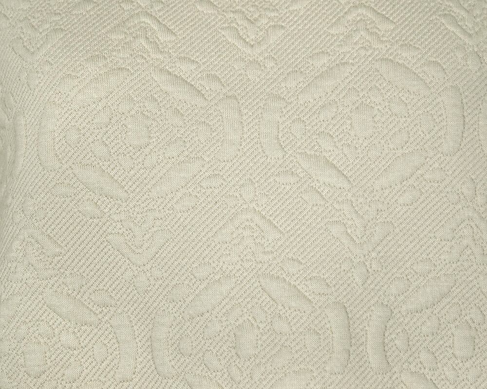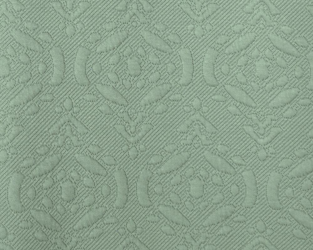 柄が浮き出るようにワタを入れて編み立てた、ふくれジャカード素材です。ふくらみのある柔らかい着心地の良さが特徴です。