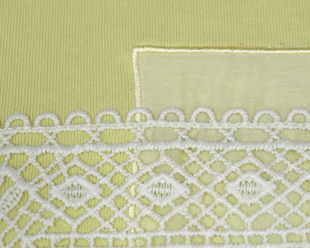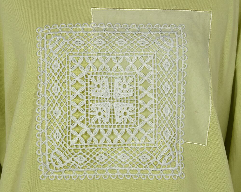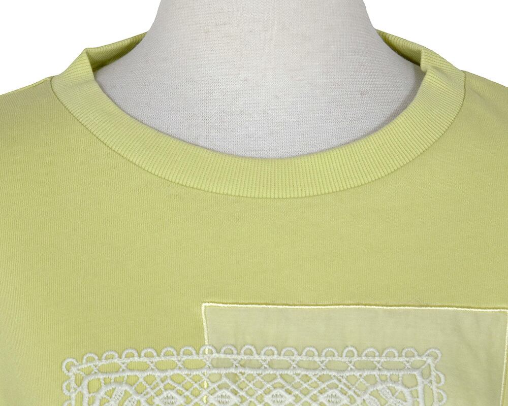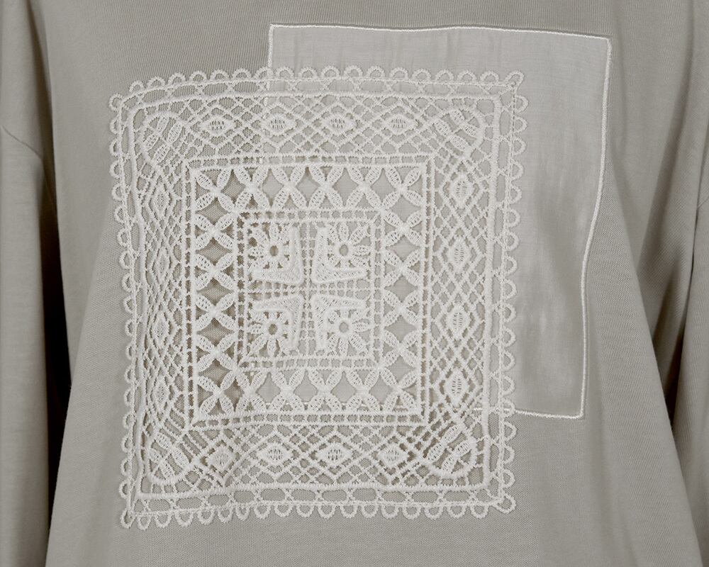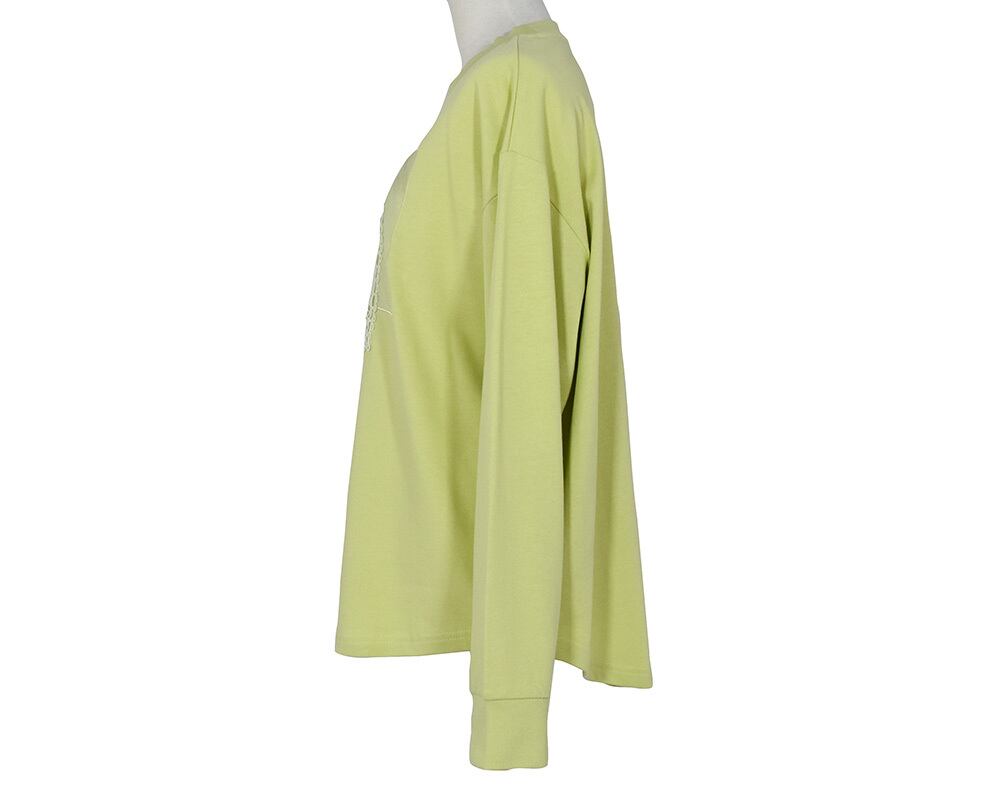 フロントにレースとオーガンジーを重ねたデザインのプルオーバーです。袖口はダブルに切り替え、伸縮性がある便利な仕様です。程よくゆとりのあるシルエットで、着まわしに便利な1枚です。