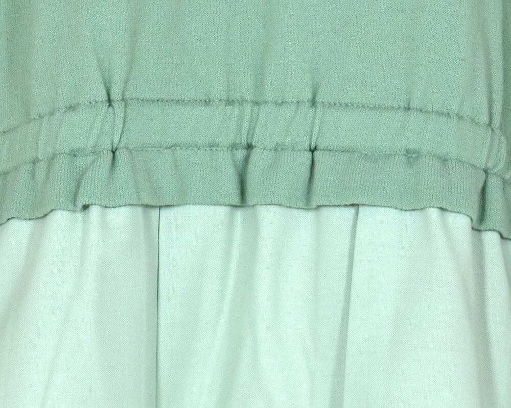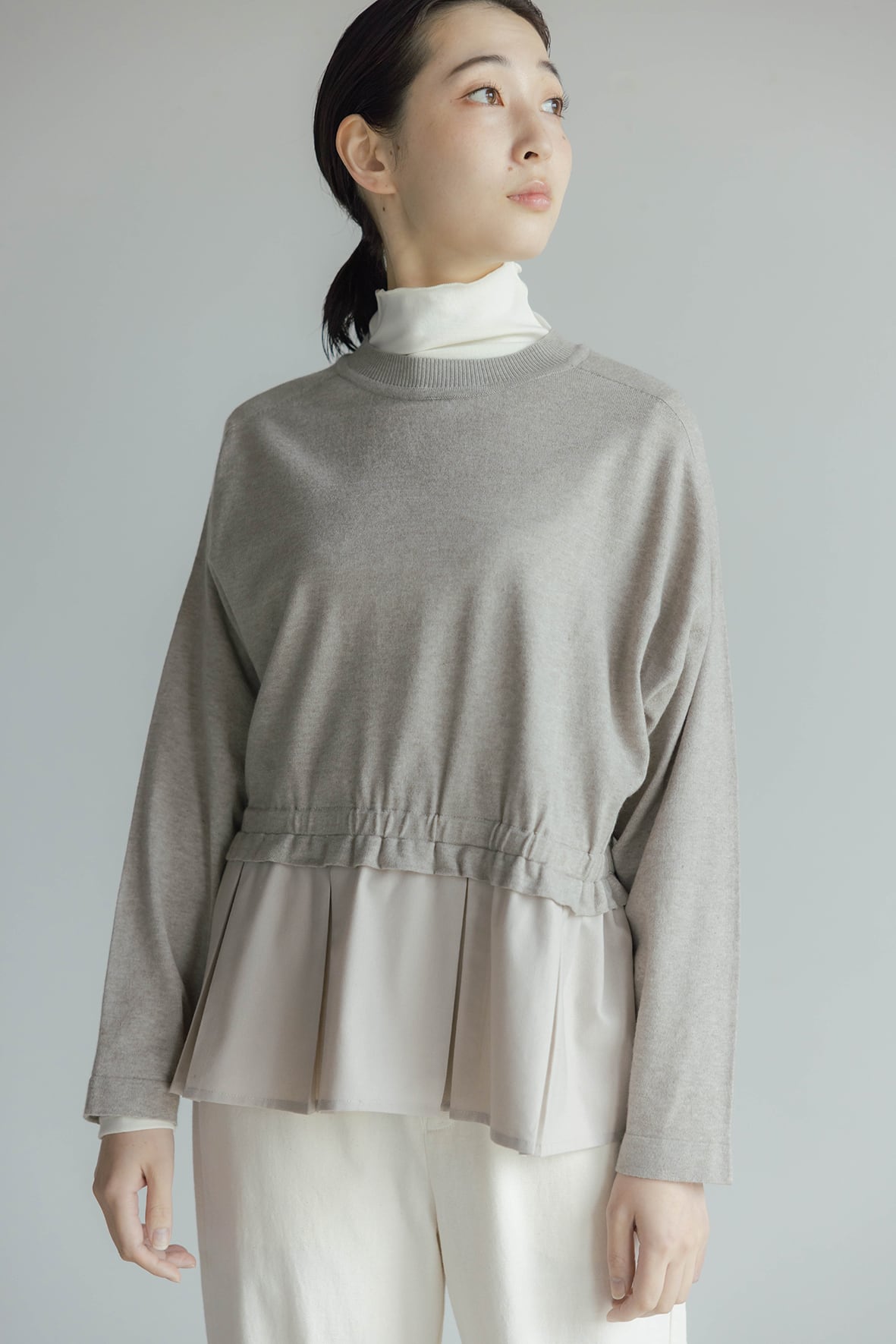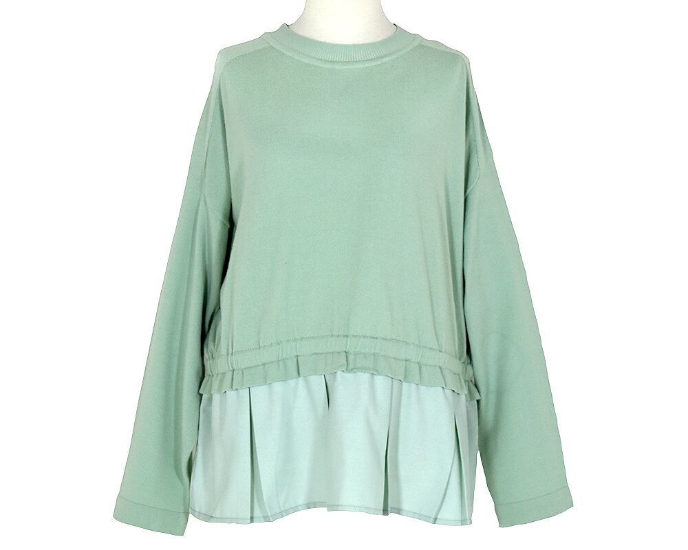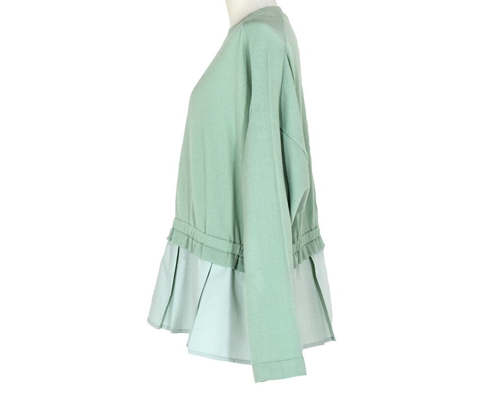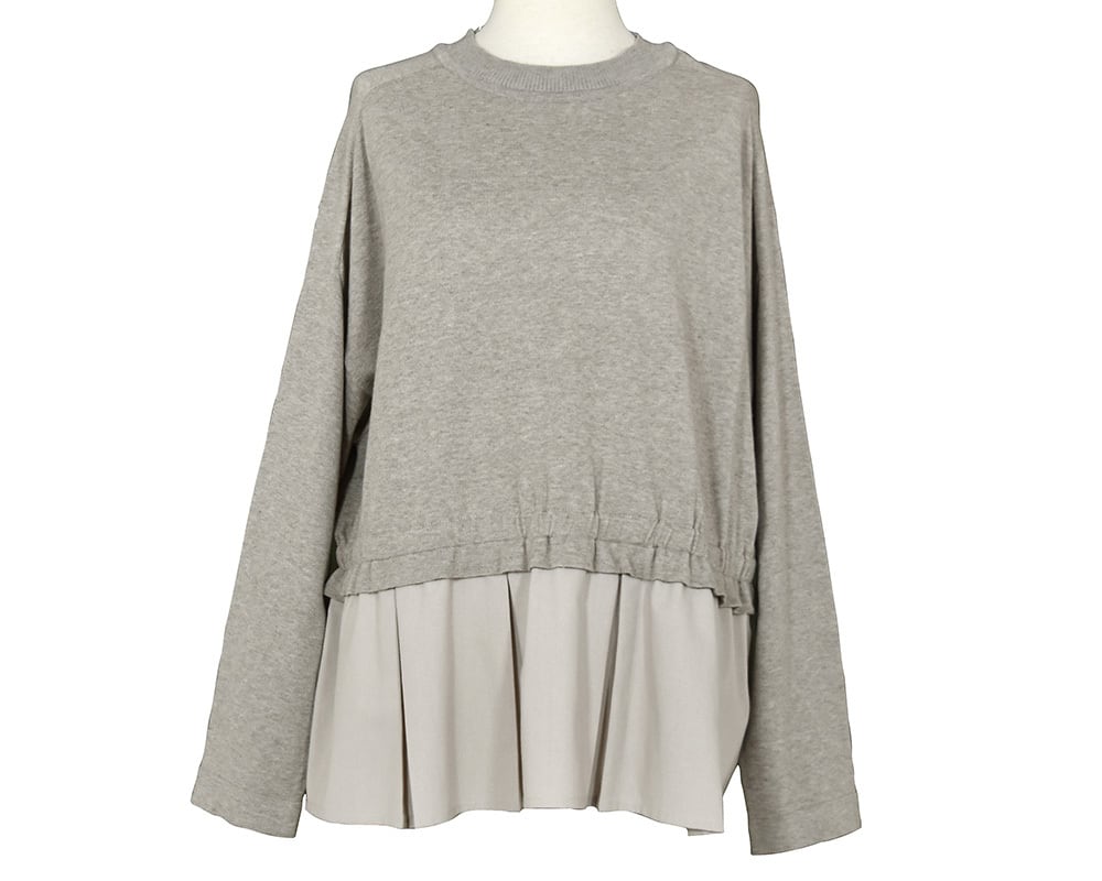 身頃上はニット、裾の切り替え下は布帛を組み合わせたプルオーバーです。