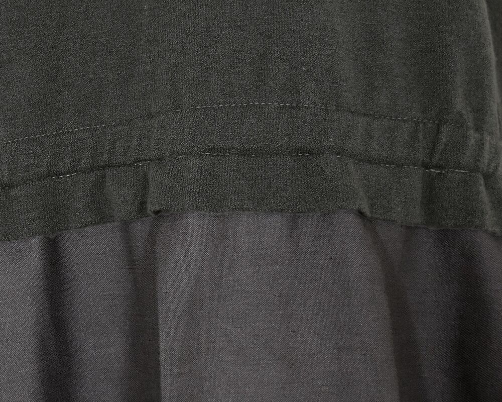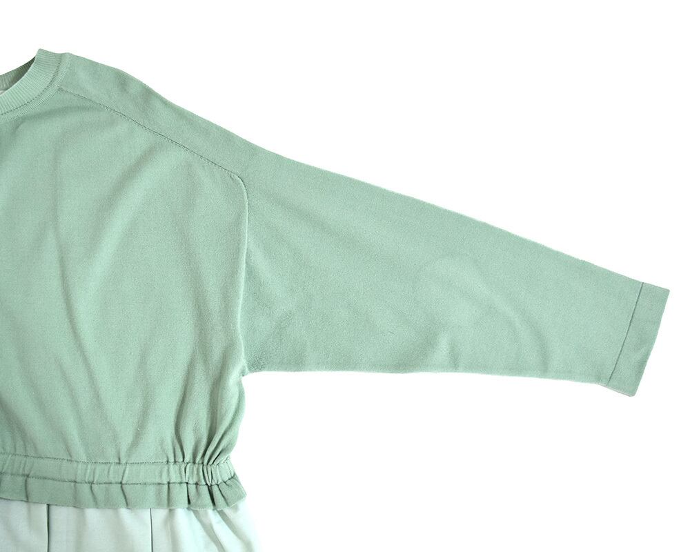 ニット部分は目の詰まったサラリとした風合いで扱いやすい素材、布帛は落ち感のあるレーヨン麻、2種類の素材を使用しています。