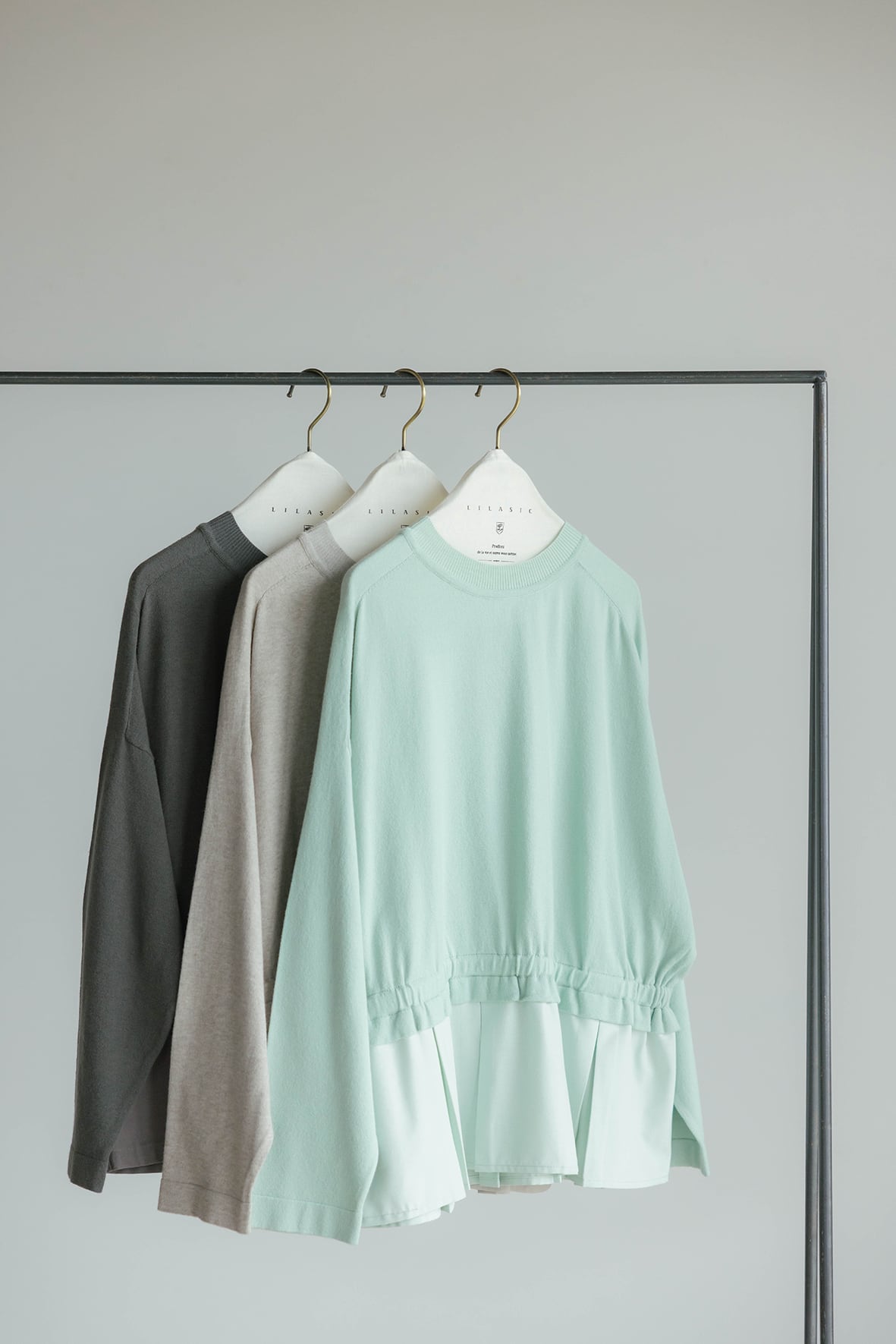 切り替え部分にゴムを入れてギャザーを寄せており、伸縮性があるため着脱もスムーズ。1枚で表情のあるスタイリングを楽しめます。