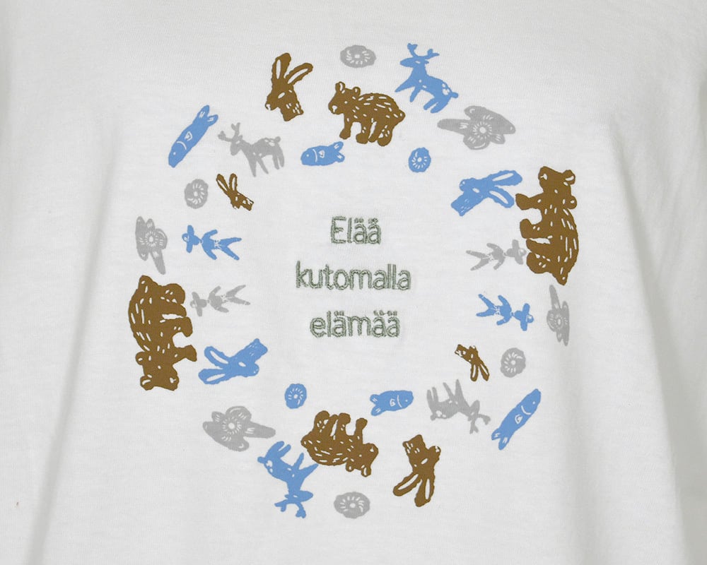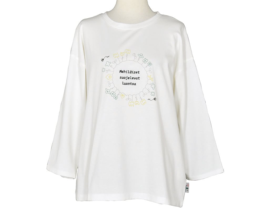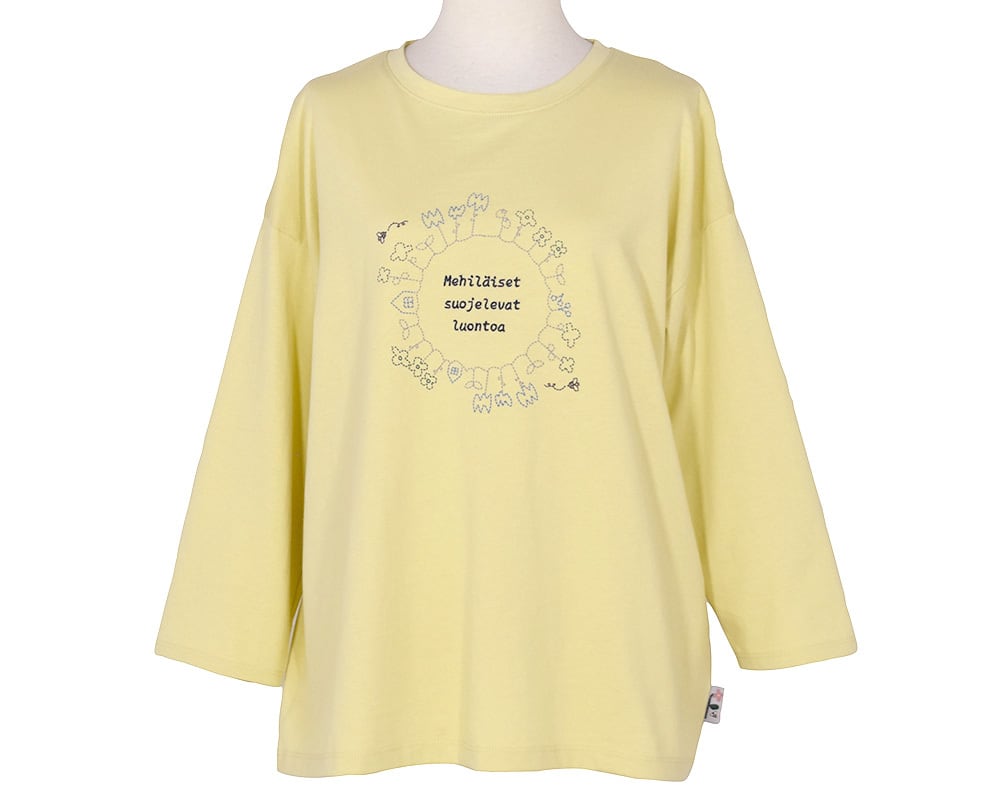いきものと植物、それぞれの循環をテーマにしたプリントプルオーバーです。ゆったりとしたシルエットで、デイリーに活躍します。ほどよい厚みの天竺生地で、自然のモチーフに合わせたやさしい素材感が魅力です。動物や人、微生物など、いきものの命の循環と、ミツバチが花粉を運び植物をつなぐ自然の営みを図案で表現。それぞれの図案に合わせたピスネームも添えました。
