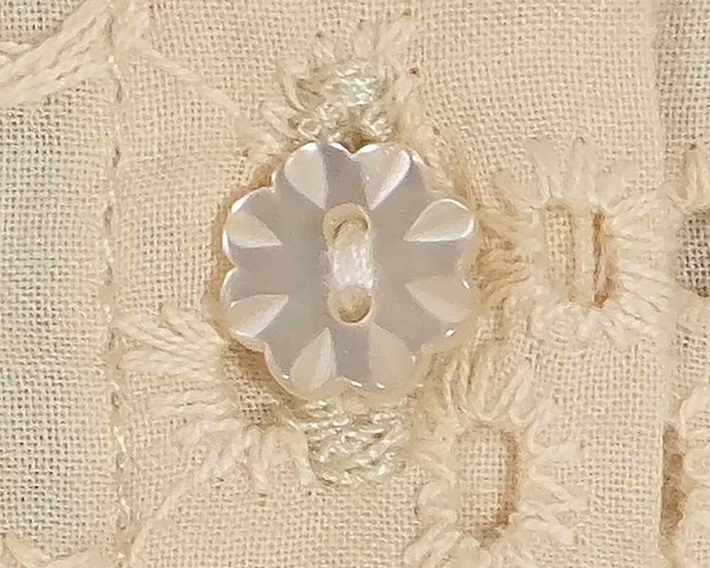 1枚で華やかに着られ、きれいめからデイリーまで幅広く活躍します。軽やかでやわらかなコットン素材で、自然な透け感が上品な印象です。前裾のロゴプレートと、フロントのお花モチーフのボタンを添え、春の特別な1日を彩るデザインです。