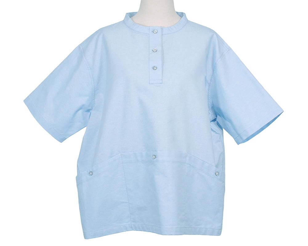 フロントに3つのワークポケットを配置した、機能性とデザイン性を兼ね備えた布帛プルオーバーです。軽やかに着られるプルオーバータイプながら、ポケットの存在感がワークテイストを引き立て、日常使いはもちろん、きれいめカジュアルにもマッチします。一枚で着映えする便利なアイテムです。