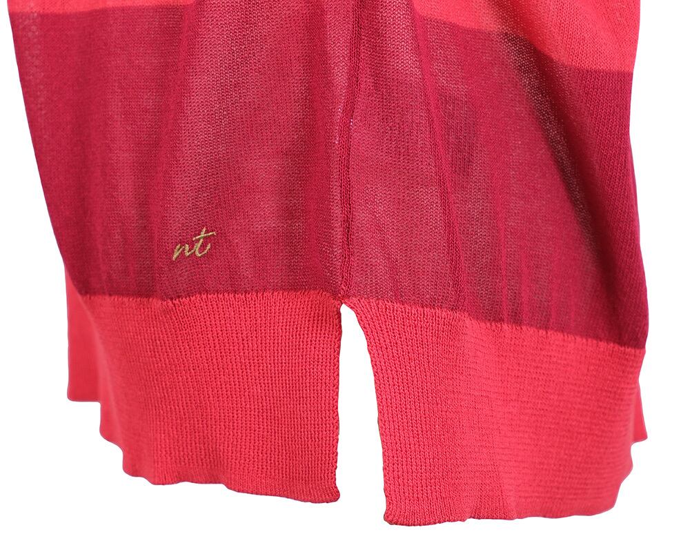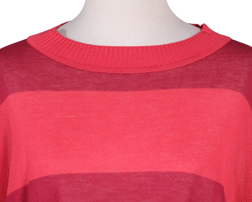 シャリ感のある糸で編み上げた、軽やかな印象のニットプルオーバー。 ドライな質感がスタイリングに清涼感を添え、春夏の軽やかなコーディネートにぴったりの一枚です。 存在感のある太ボーダー柄は、シンプルな着こなしに程よいアクセントを与えます。 リブ仕様の襟元・袖口・裾が全体のシルエットを引き締め、すっきりとした印象に。 裾に施した刺繍がデザインのポイントとなり、一枚での着用はもちろん、シャツやアウターとのレイヤードにも幅広く活躍します。