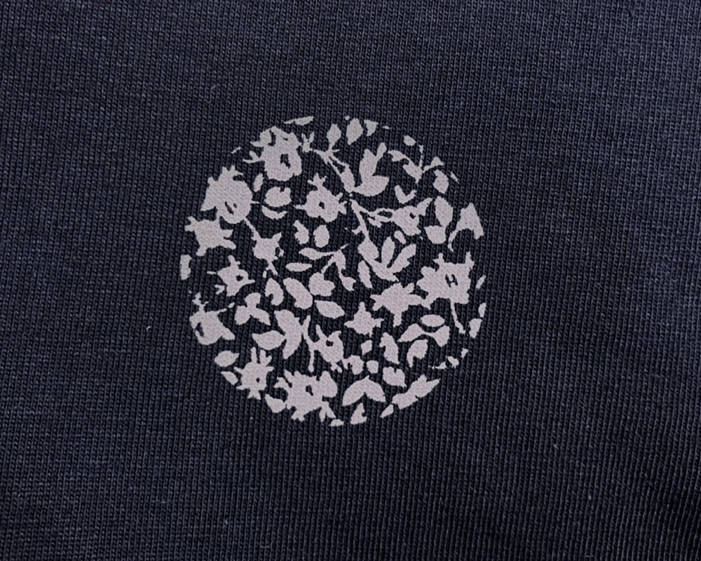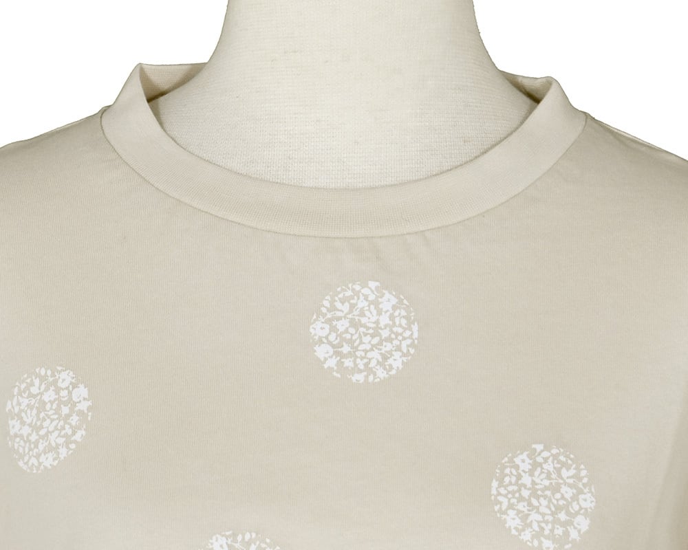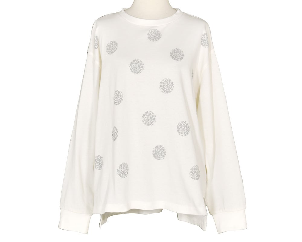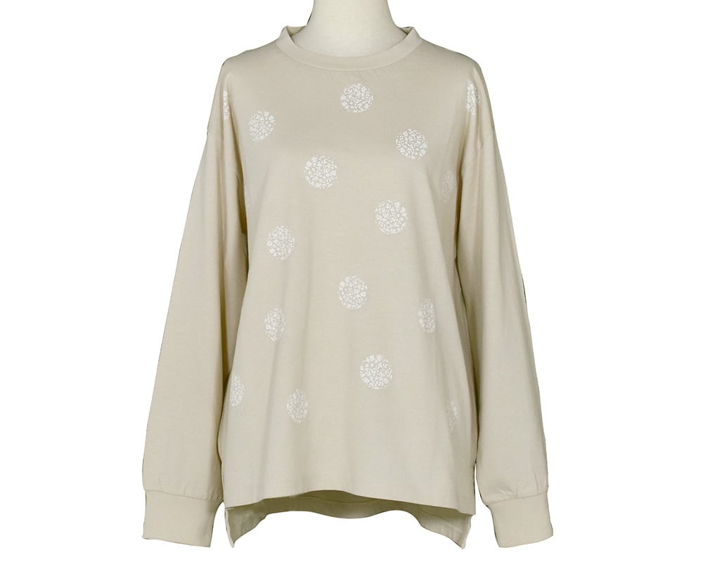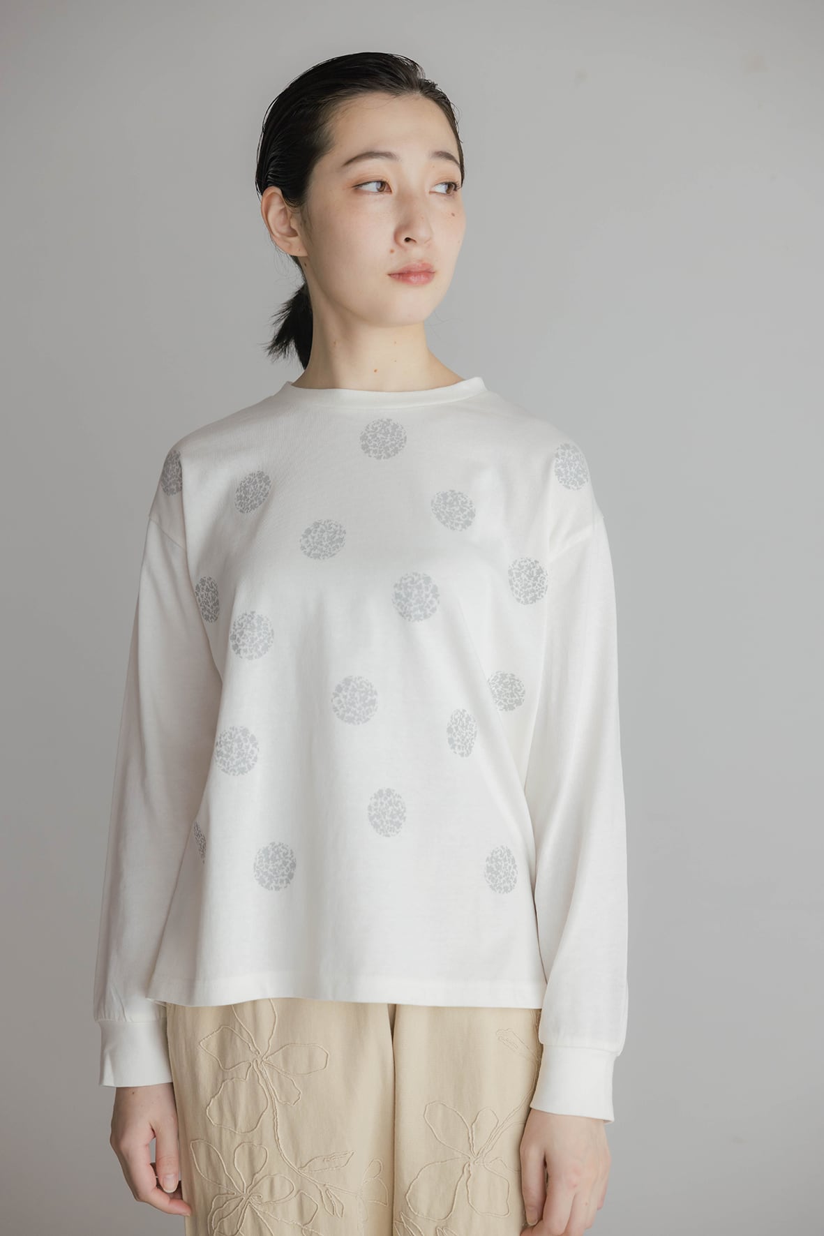 フロントにカスミソウをモチーフにしたドットをプリントした、カットソープルオーバーです。袖口はダブル仕立ての便利な仕様です。透けが気にならない適度の厚みのコットン天竺素材です。