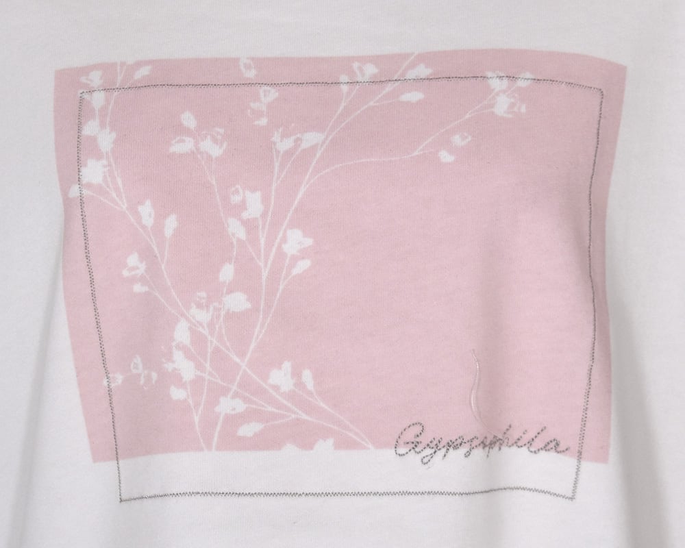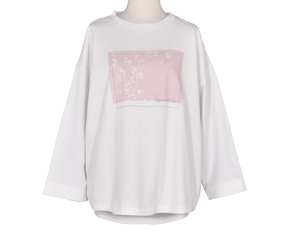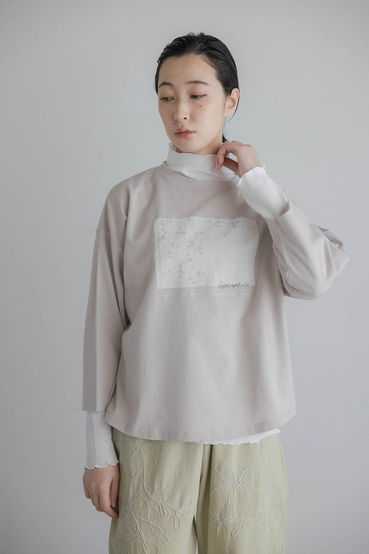 フロントにカスミソウをモチーフにしたプリントと刺繍を重ねた、カットソープルオーバーです。程よくゆとりのあるシルエットです。透けが気にならない適度の厚みのコットン天竺素材を使用しています。