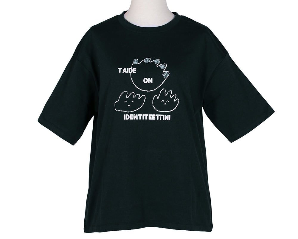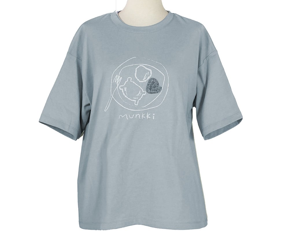 1枚でコーデの主役になる、お菓子とアート2種類のプリントTシャツです。やわらかくてさらっと着られる素材で、毎日気軽に着ていただけます。「お菓子」柄はフィンランドのドーナツ、「アート」柄は、アートに取り組む手やお花をイメージしたモチーフと「アートはアイデンティティー」という意味のロゴを描いています。