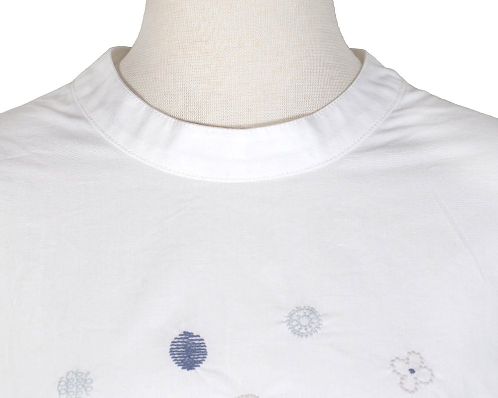 刺繍をあしらったプルオーバーです。プチハイネックの襟デザインはカジュアルになりすぎず1枚でも様になるのがうれしいポイント。コットン素材で、さらっと心地よく着ていただけます。