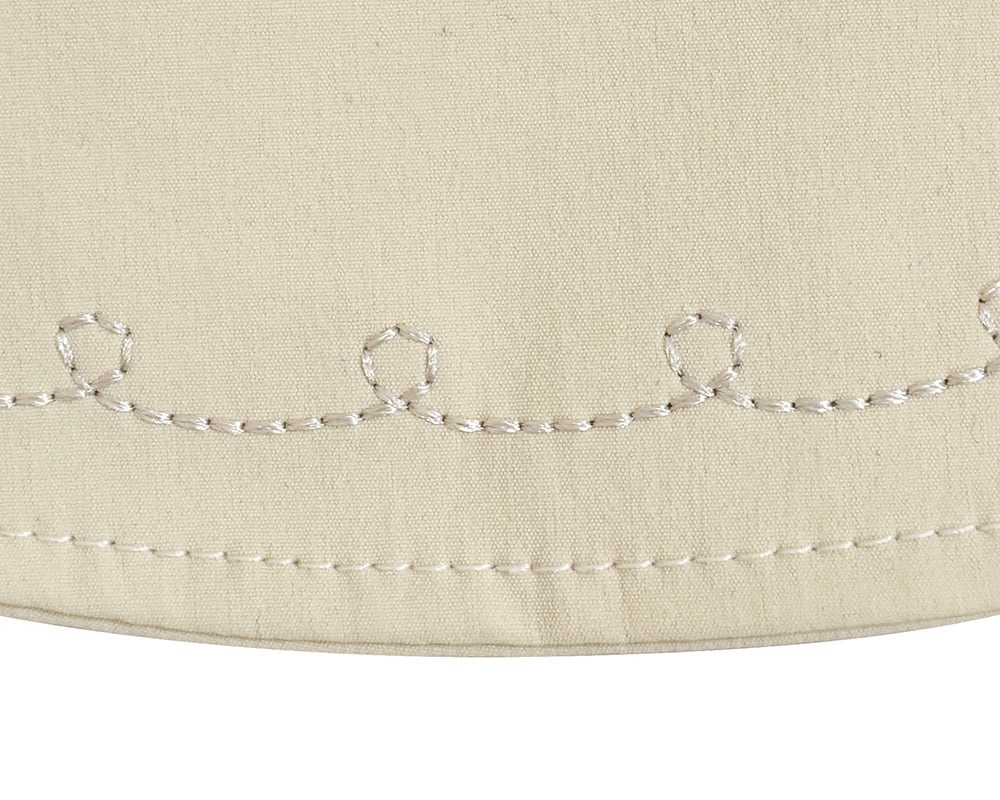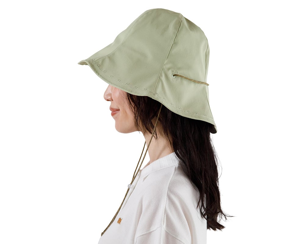 丸みのあるシルエットで、夏のおでかけにぴったりなチューリップハットです。裏地は風通しの良いメッシュ素材で、夏にかぶっても心地よく過ごせます。サイズ調整できる仕様のため、どなたでも合わせやすいサイズです。紐通しの菊穴とつばには、Keittoらしいステッチ刺繍を施しました。
