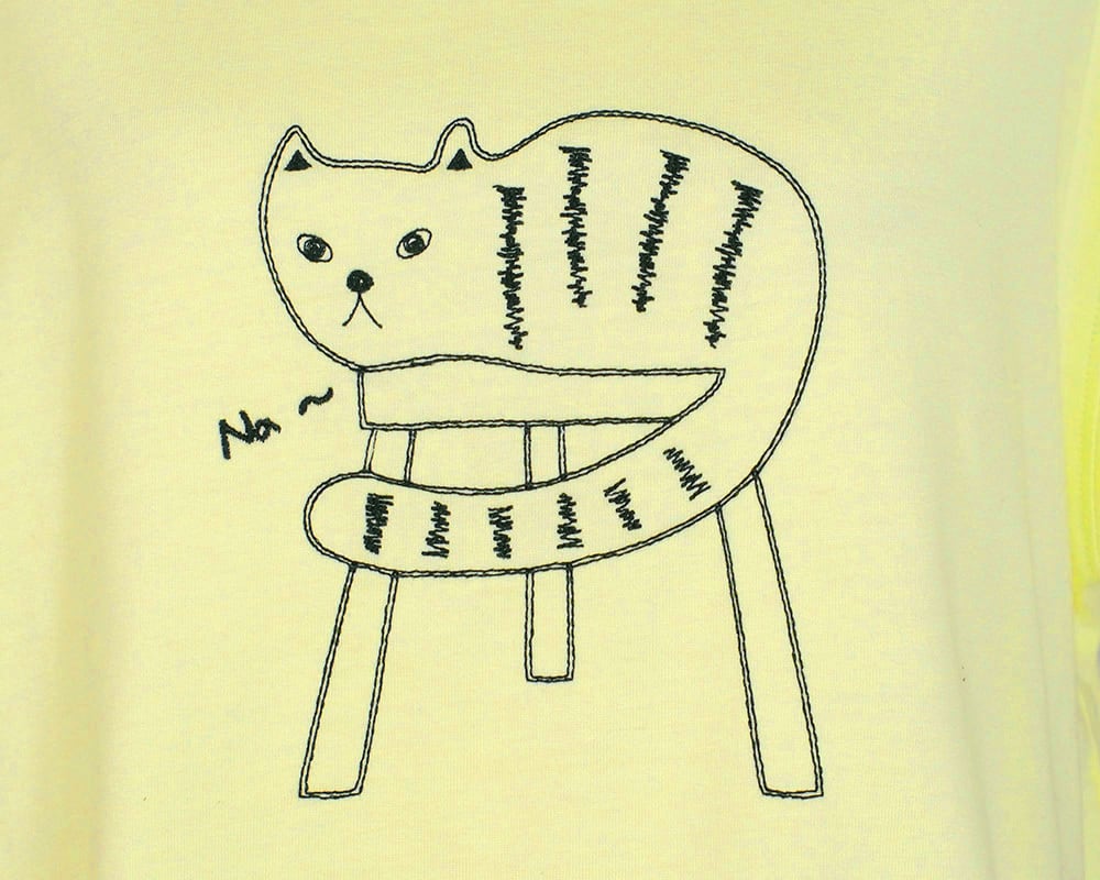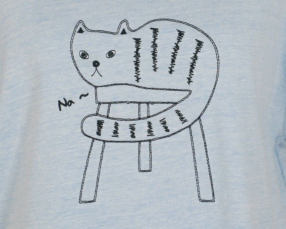 椅子とアニマル(猫)モチーフの刺繍を施したTシャツ。