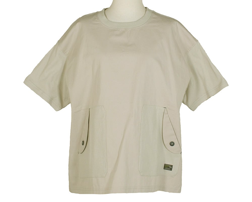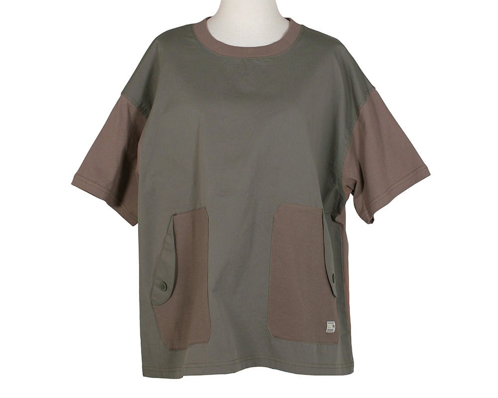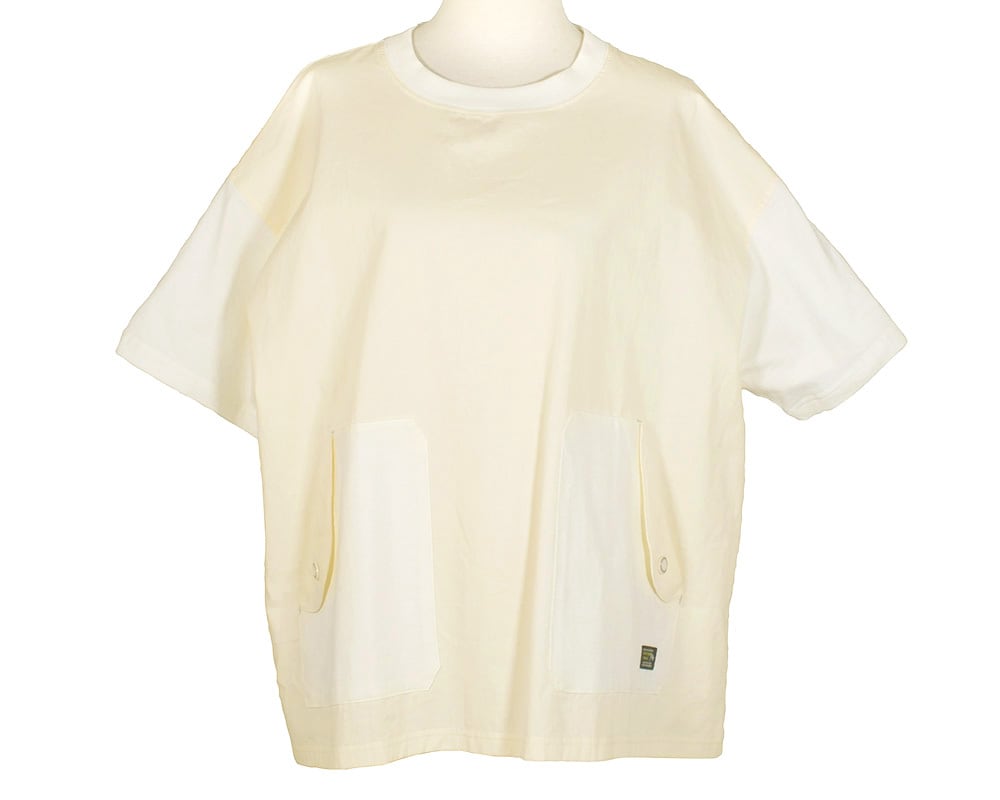 布帛生地を前身頃とポケットフラップに取り入れた、異素材づかいがポイントのカットソープルオーバー。カットソーならではの柔らかさに、布帛のほどよいハリが加わり、シンプルながら立体感のあるデザインに仕上がっています。ワイドシルエットがリラックス感を生みつつ、ラフになりすぎない程よいバランス。デイリーに取り入れやすく、幅広いボトムと相性の良い万能アイテムです。