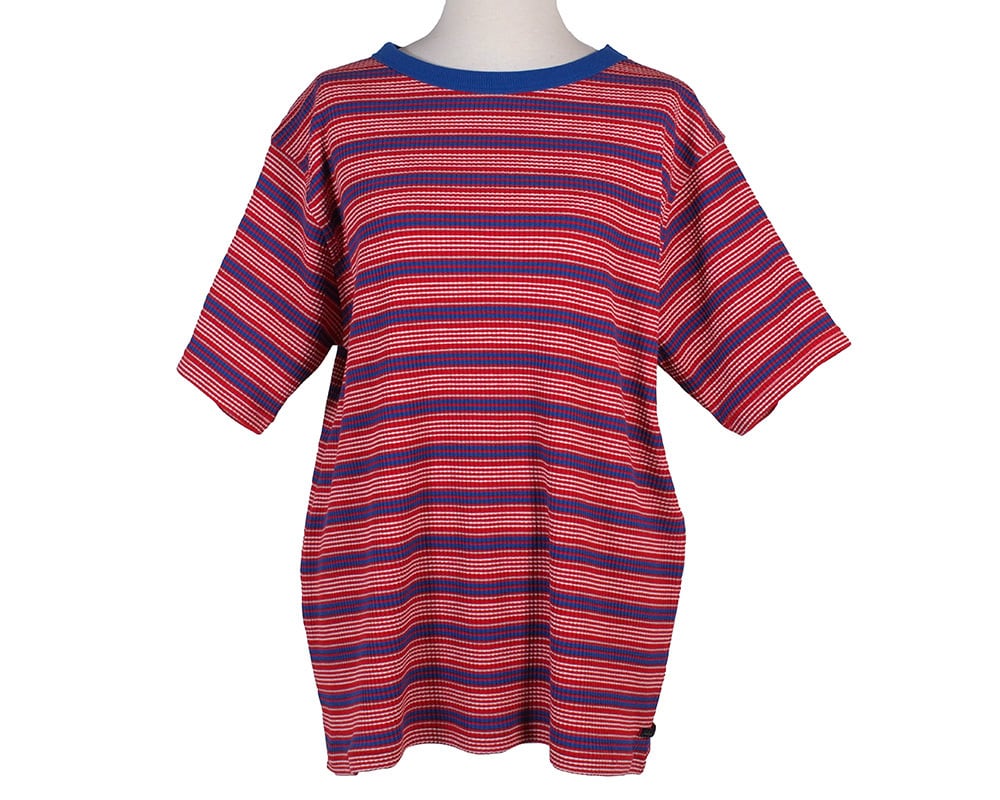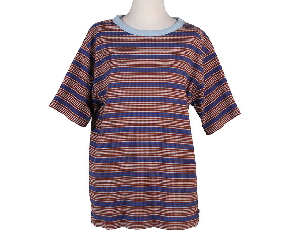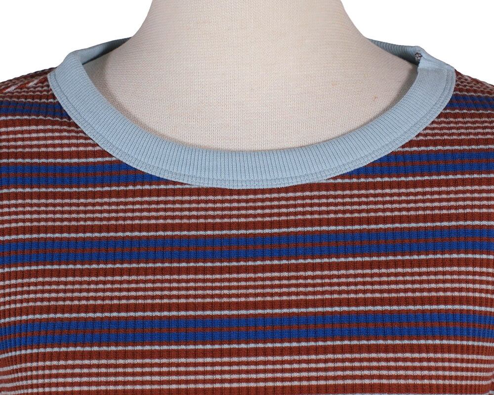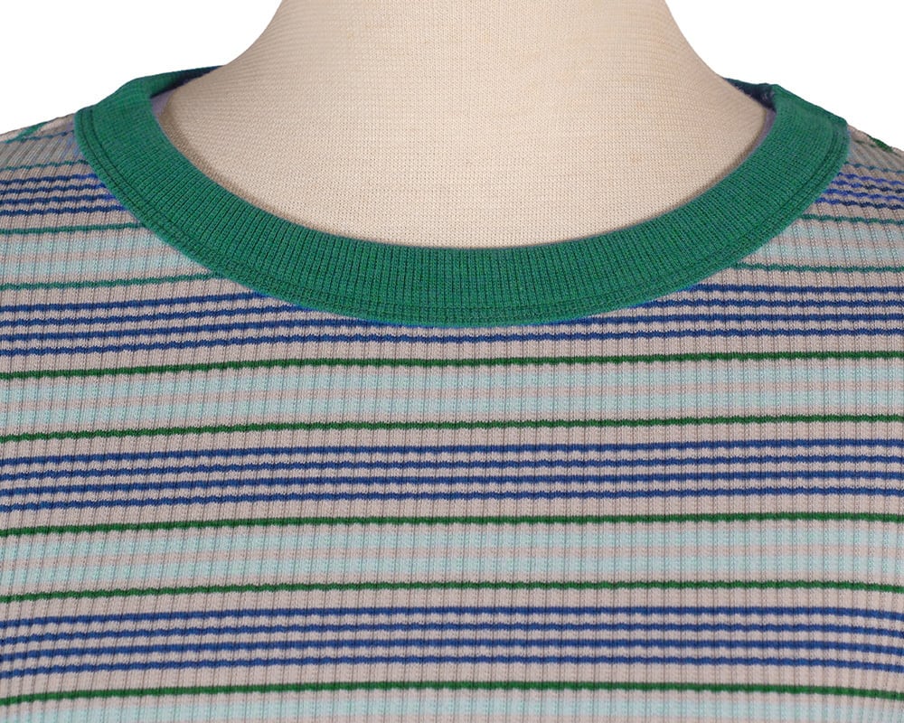 程よい肉感と柔らかな着心地を両立した先染めマルチボーダーTシャツ。