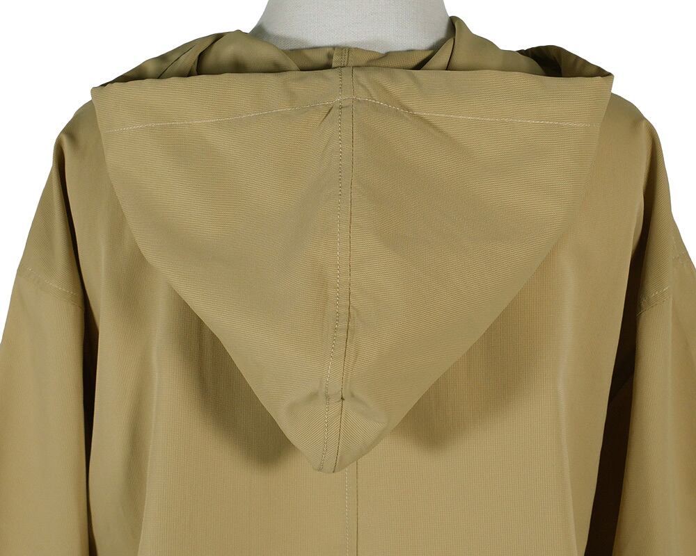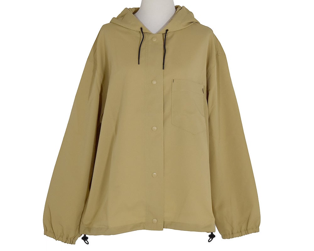 ソロテックス素材ならではの軽快さとしなやかさを活かしたフードジャケット。柔らかく優れたストレッチ性と、型崩れしにくい形態安定性を備えており、動きの多い日でも快適に過ごせます。フロントはスナップボタン仕様で着脱しやすく、フードのドローストリングが程よいカジュアル感をプラス。袖口・裾のゴム仕様が実用性とスポーティな雰囲気を両立します。軽量で扱いやすく、季節の変わり目にも活躍する万能アウターです。