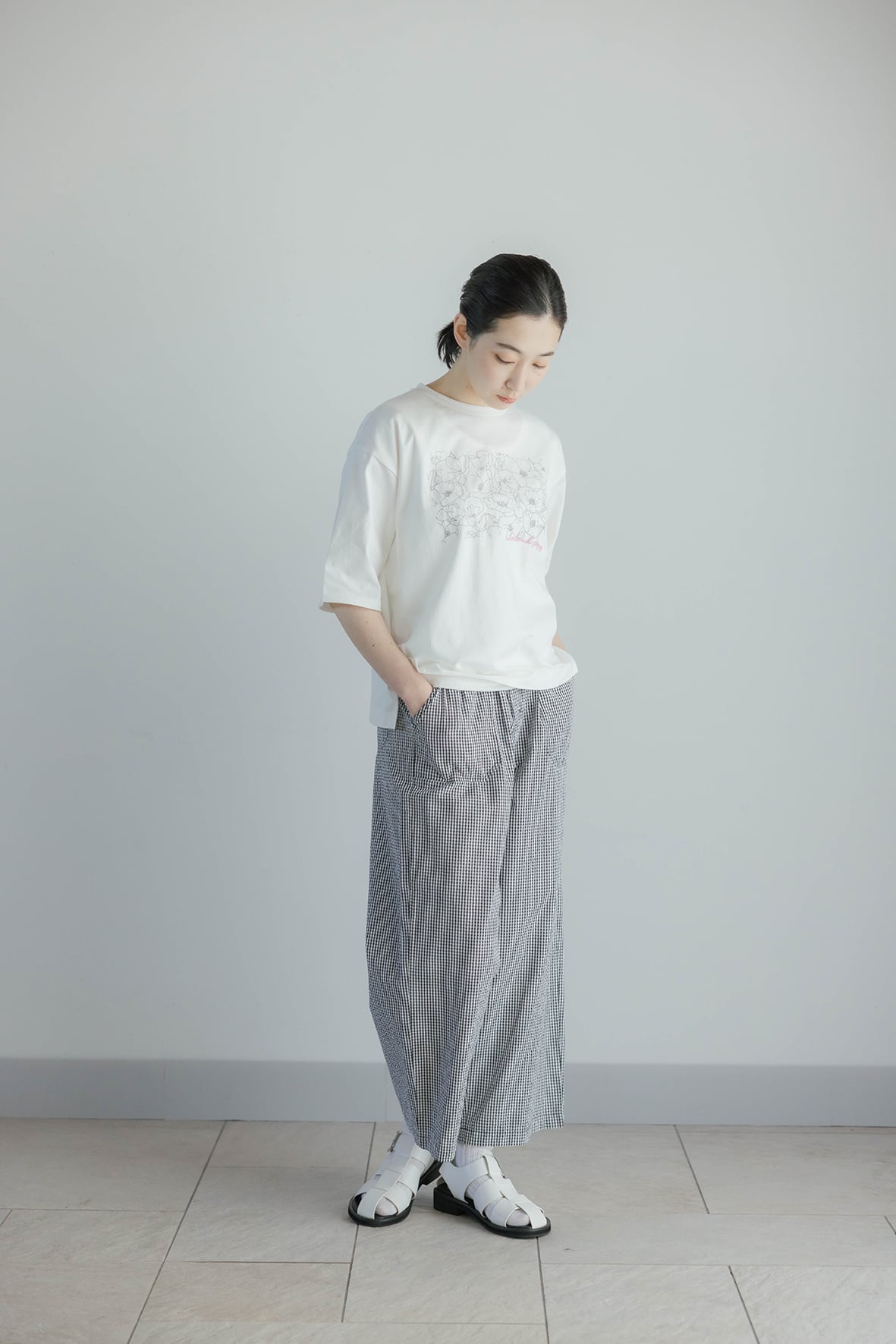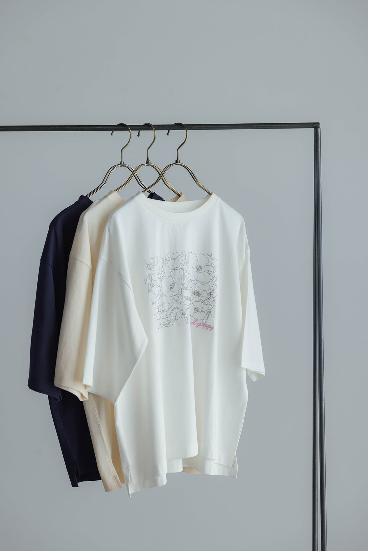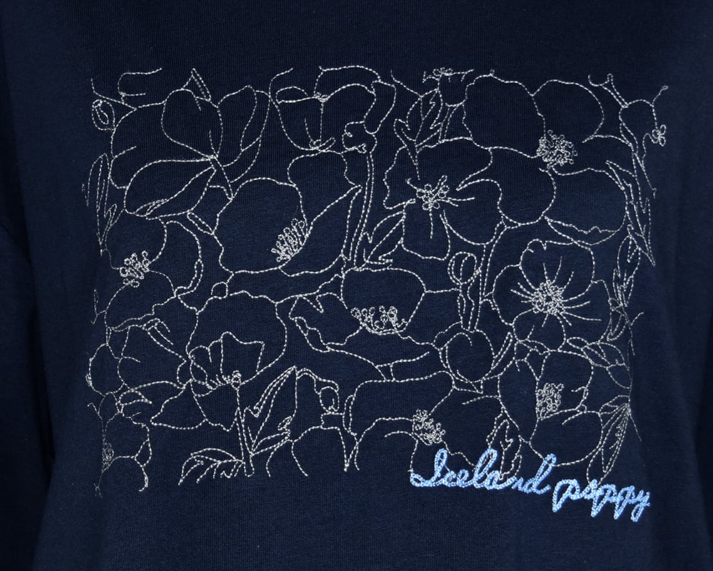 フロントにポピーのイラストモチーフを刺繍したTシャツです。繊細な刺繍が胸元を華やかに見せてくれます。二の腕をカバーできる長めの袖丈が、安心感のあるデザインです。
