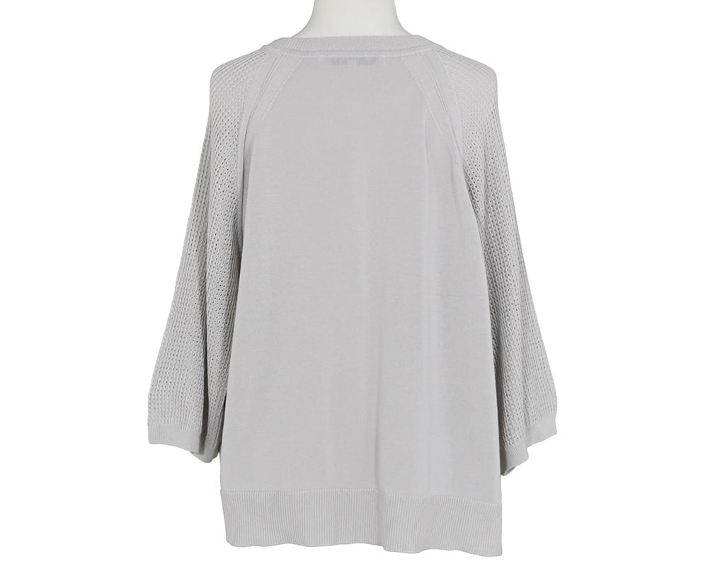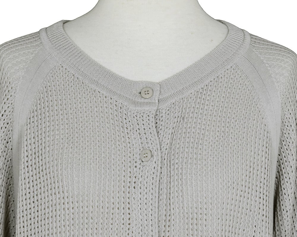 フロントはメッシュ編みで風通しがよく、日よけや冷房対策にも重宝するカーディガンです。暑い季節でも快適にはおれて、夏場の温度調整に便利なアイテムです。吸湿性に優れ、滑らかな手触りのコットン強撚糸を使用した、ドライタッチな肌触りが特徴の素材です。