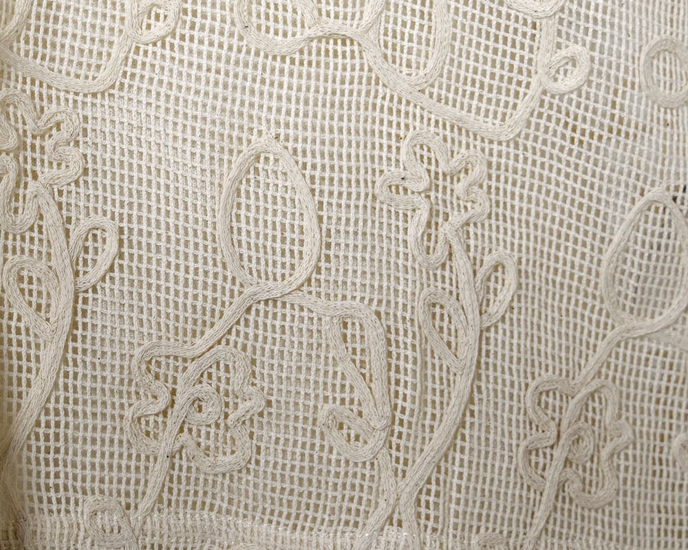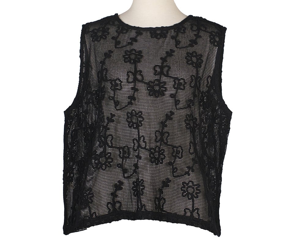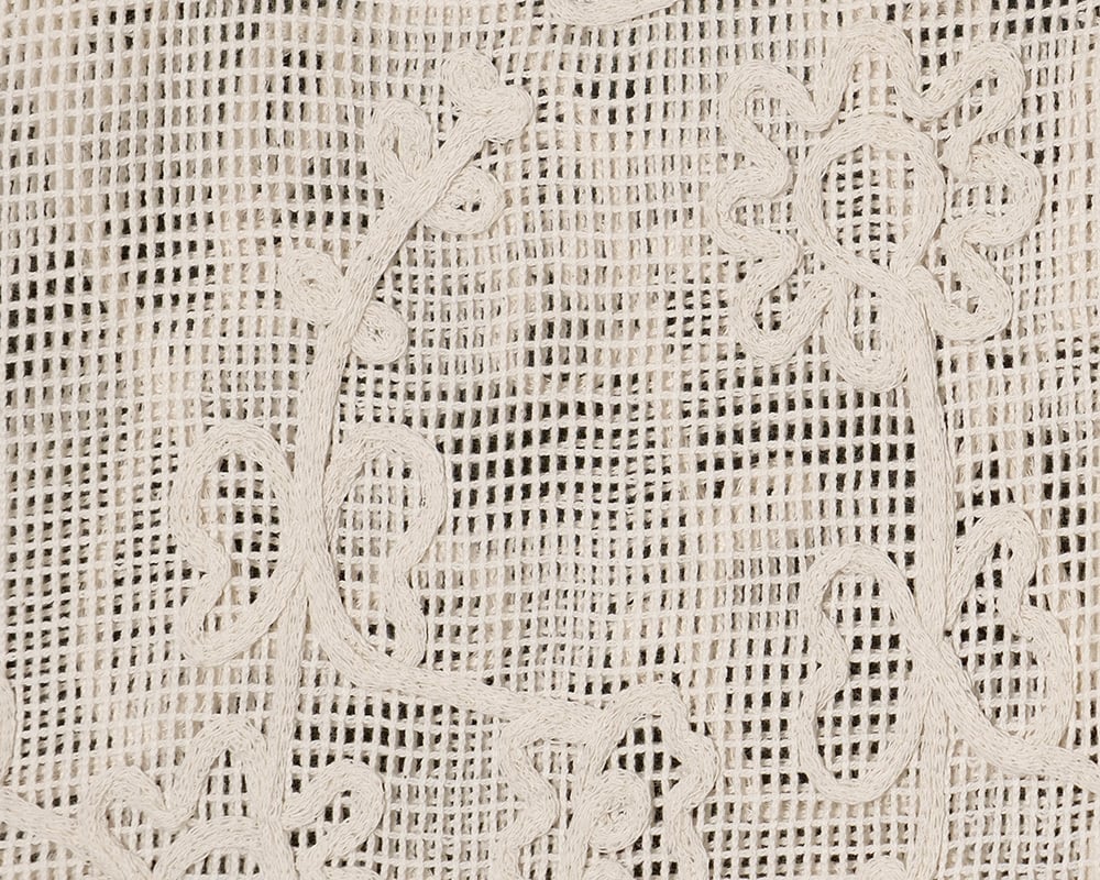 前後どちらでも着られるコード刺繍入りのベストで、重ねるだけでコーデに表情が生まれる一枚です。前後で違う柄になっています。軽やかなメッシュ生地に立体感のあるコード刺繍をほどこしています。刺繍の柄は、天気の移り変わりを楽しむイメージではれ・あめ・お花をモチーフにしたオリジナルの図案です。