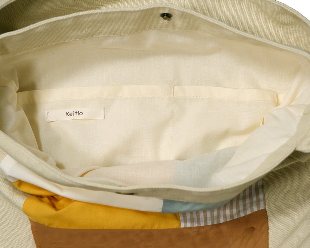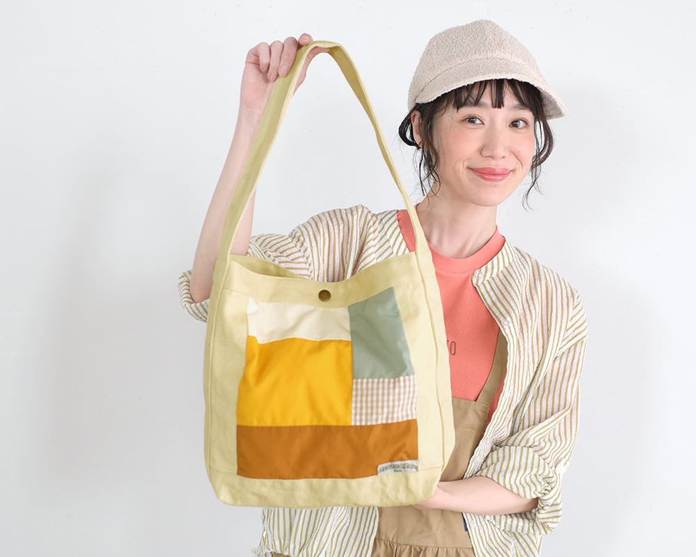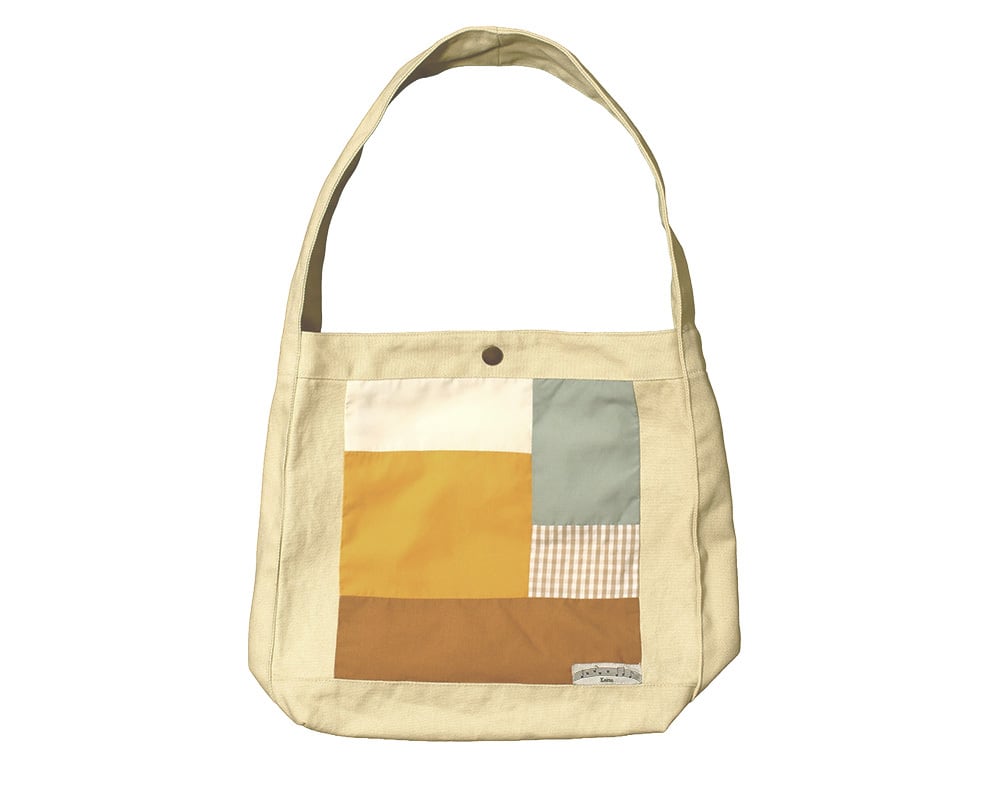 パッチワークデザインが目を引くトートバックで、持つだけでコーデに表情が生まれるアイテムです。しっかりとしたコットン素材で、デイリーに使いやすい持ち心地です。パッチワークの配色で晴れ&雨を表現しました。どちらの日にも持っておでかけしたくなるようなワンハンドルのバッグです。