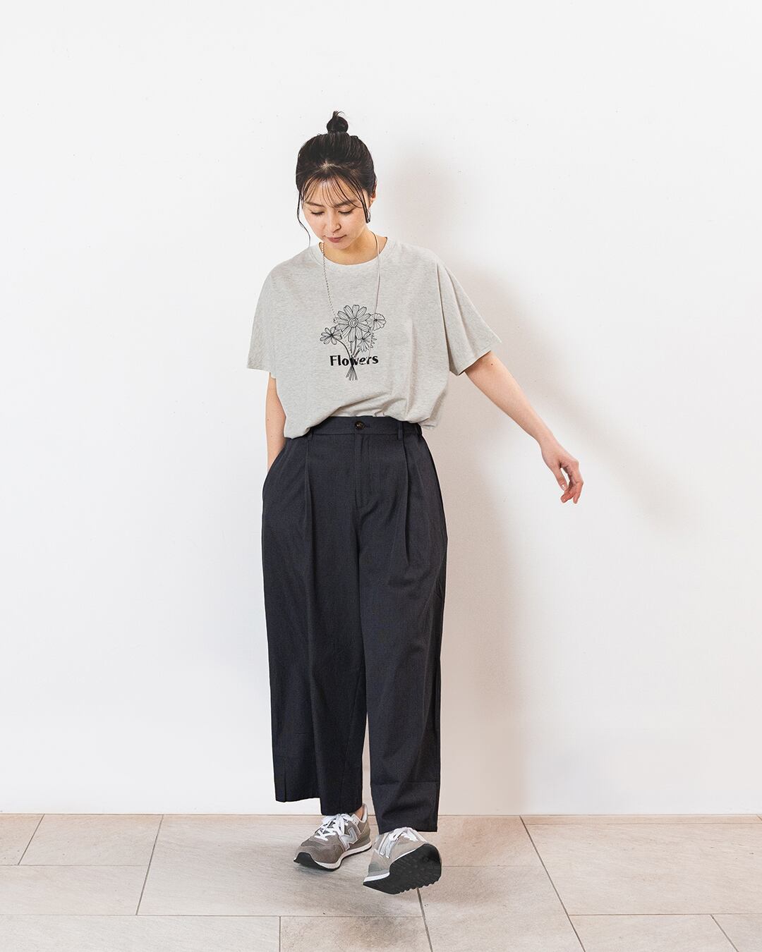 フロントのタックとゆとりのあるワイドシルエットが、動くたびに美しいドレープを生み、リラックス感のある穿き心地に。