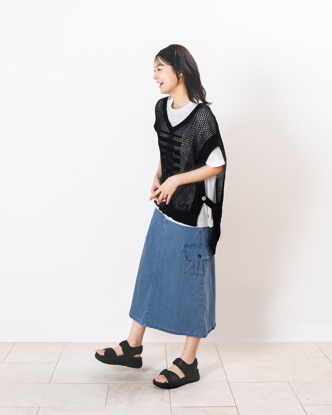 ほどよくゆとりを持たせたアイラインシルエットで、体のラインを拾いすぎず、すっきりとした印象に仕上げました。