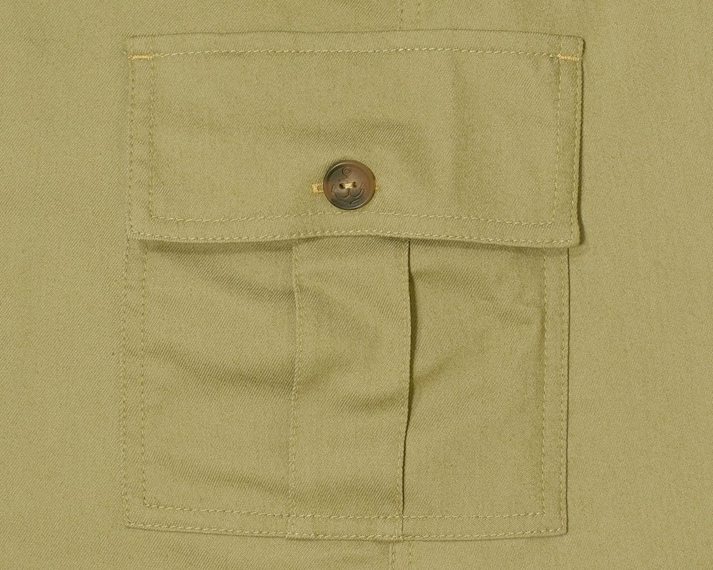 ステッチやカン止めを効かせたディテールが、素材感を引き立てるワークテイストのアクセントに。