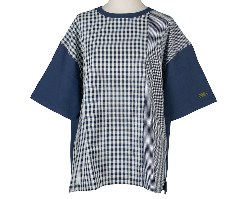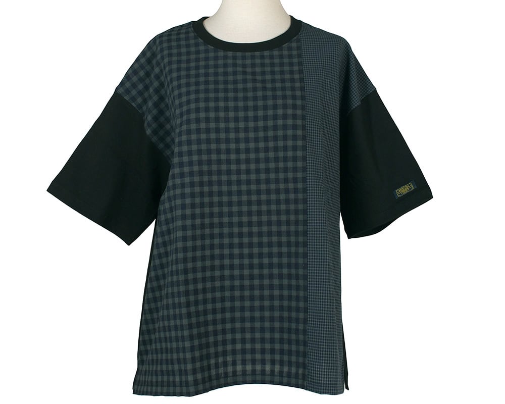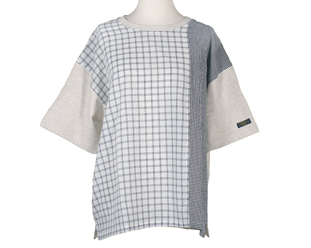 カットソーと布帛を組み合わせた、異素材使いのTシャツ。