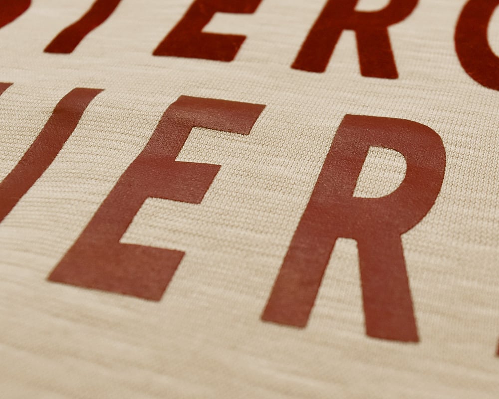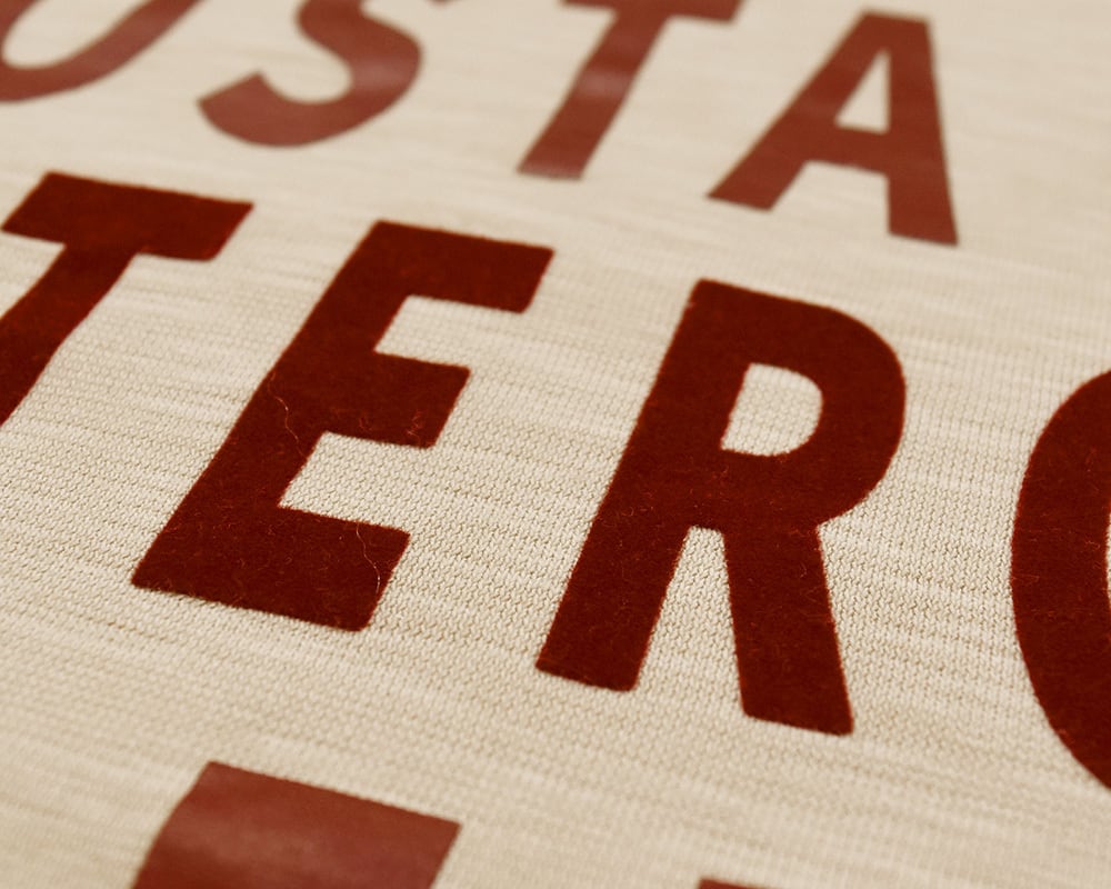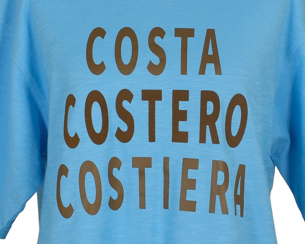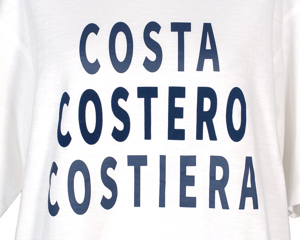 上下の「COSTA」「COSTIERA」はラバープリント、中央の「COSTERO」はフロッキープリントで仕上げ、
