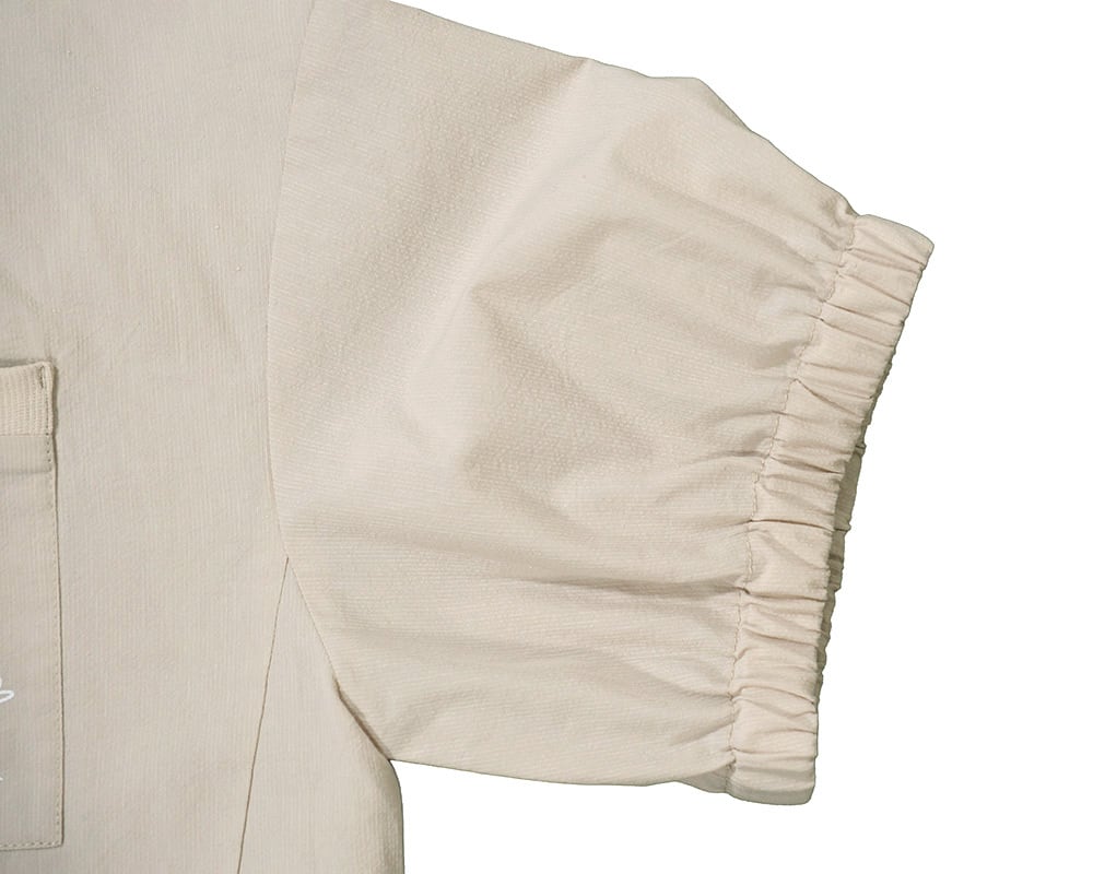 肌離れがよく、さらりとした着心地が魅力です。衿ぐりはリブ仕様、袖口はゴム仕様で、ほどよいフィット感と動きやすさをプラス。