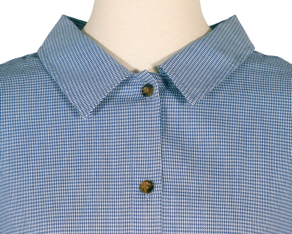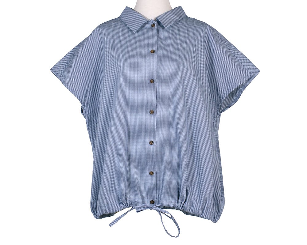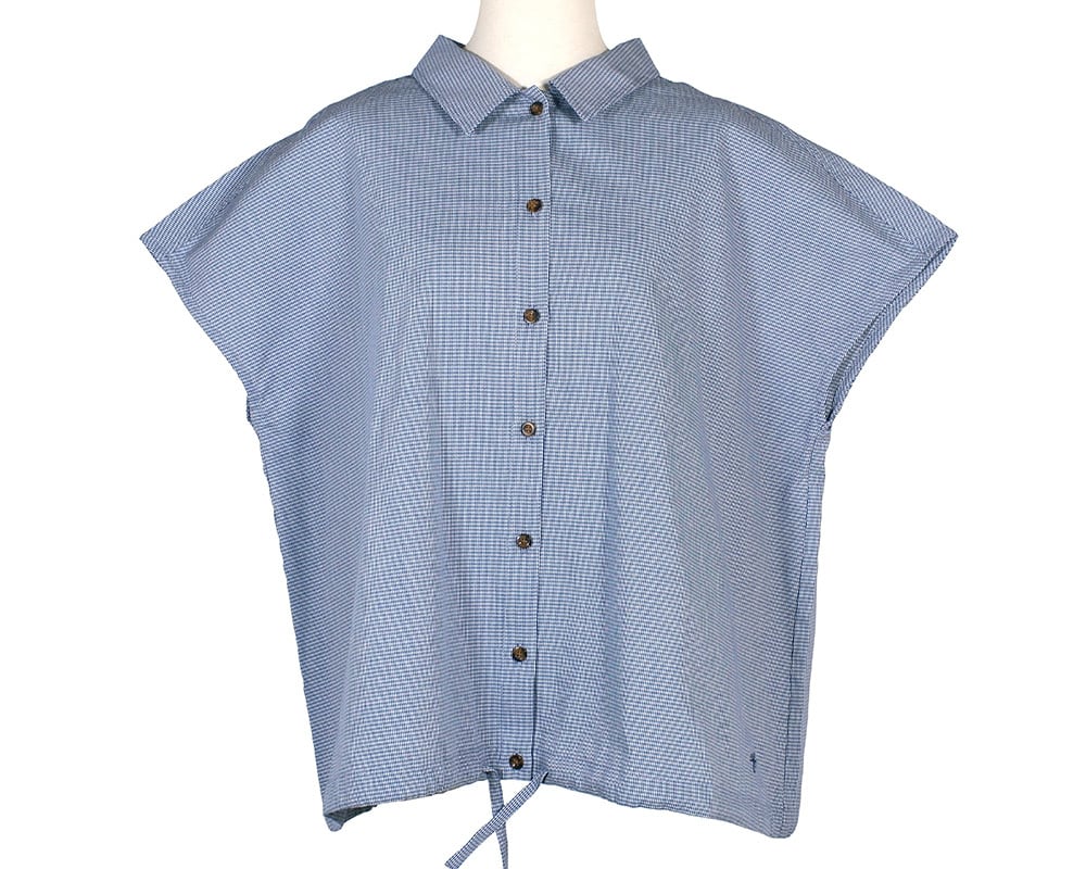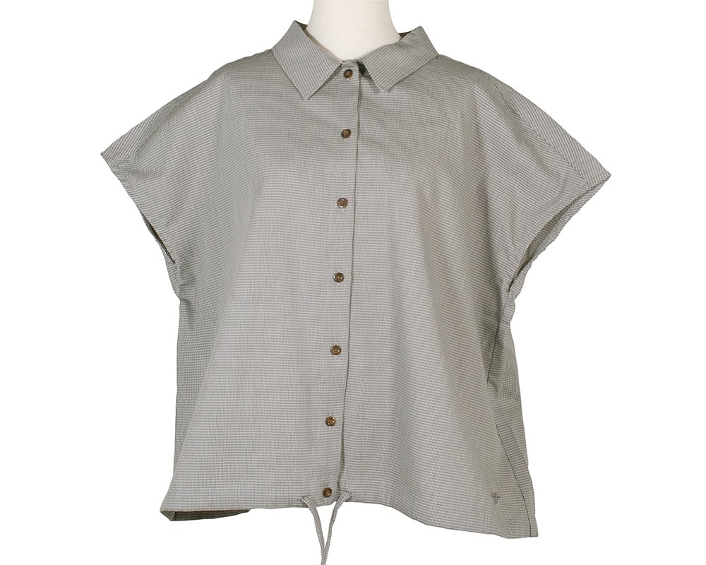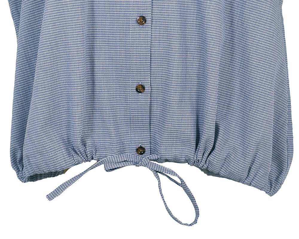 先染めのマイクロ千鳥チェック生地を使用した、クラシックな表情のノースリーブブラウス。